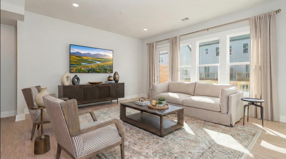 The Henry home design offers a spacious three-level floor plan with a modern layout, perfect for luxury living. On the main floor, an open-concept kitchen with island flows seamlessly into the great room and casual dining area, creating a cohesive living space. Upstairs, the luxurious primary suite boasts a tray ceiling adding an elegant touch to the room. A walk-in closet ensures plenty of storage space while the primary bathroom features dual vanities and a luxe shower with seat. Two secondary bedrooms, one on the third floor and one on the first floor, feature private baths. Also featured is easily accessible laundry, a powder room on the main living level, and an everyday garage entry.