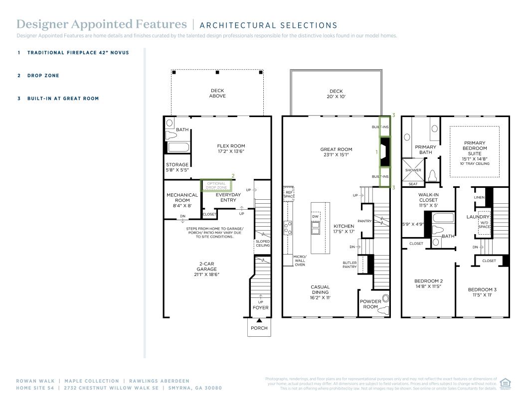 Welcome to the Rawlings, a luxurious and spacious three-story townhome. This stunning residence offers an open floor plan with a kitchen featuring a center island that overlooks the great room and casual dining area. With three bedrooms, including a magnificent primary suite, this home provides ample space for comfort and relaxation. Enjoy the convenience of dual vanities in the primary bath along with a private water closet, tray ceiling, and walk-in closet in the primary suite. Additional features include a flex room that can be customized to fit your needs, an everyday entry for added convenience, and a laundry room that's easily accessible.