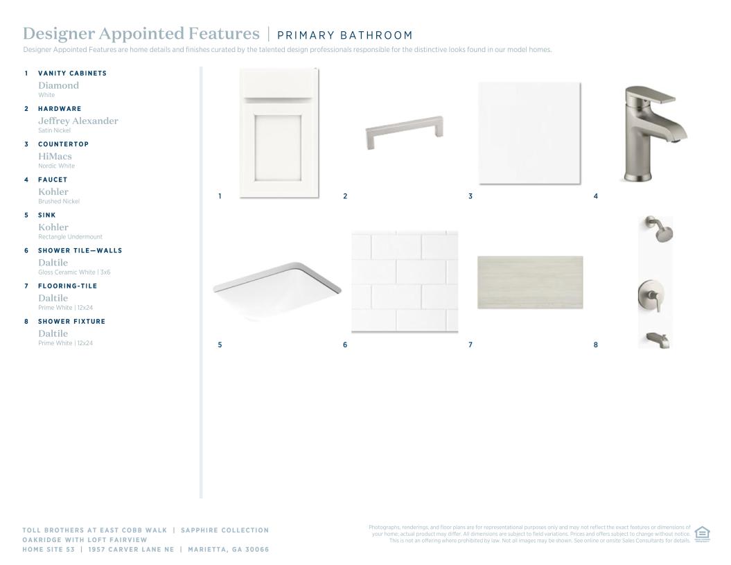Toll Brothers Designer Appointed Collections are professionally curated selections of fixtures and finishes that come together to create a cohesive, distinctive look for a home. Learn More