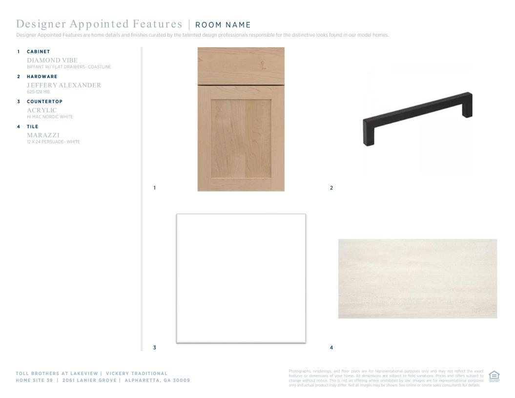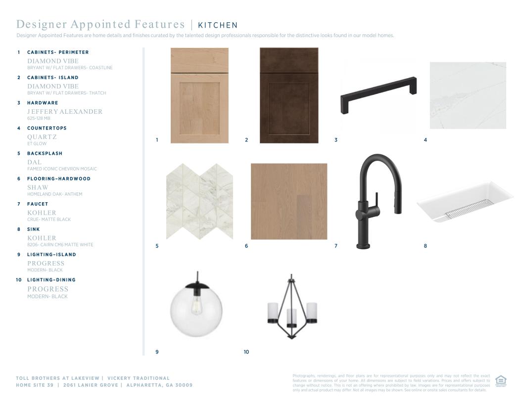 Toll Brothers Designer Appointed Collections are professionally curated selections of fixtures and finishes that come together to create a cohesive, distinctive look for a home.  Learn More