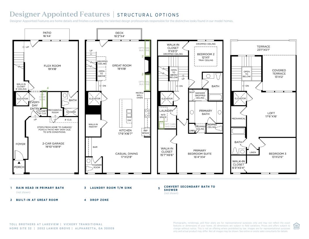 Step into luxury living with The Vickery. The inviting covered entry sets the tone for warmth and comfort as you enter. Designed for seamless living, the flow from the spacious flex room to the second-floor main living area offers an expansive great room, casual dining space, and a covered large deck with multi-slide stacked doors—perfect for everyday living and entertaining. The centerpiece of this home is the well-appointed kitchen, featuring a large center island with a breakfast bar for effortless meal preparation. Retreat to the luxurious primary bedroom suite on the third floor, complete with dual walk-in closets and a spa-like primary bath with dual vanities, a spacious luxe shower with a seat, freestanding tub, and linen storage—all tailored for your ultimate comfort. Find serenity on the fourth floor in your own private sanctuary, featuring an additional bedroom, shared hall bath, and a generous loft overlooking the partially covered rooftop terrace—offering a cozy and secluded space to unwind and relax.