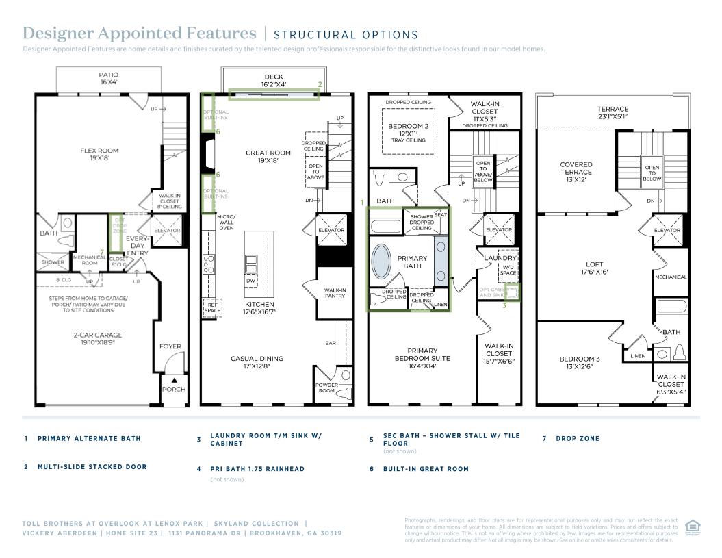 Step into luxury living with The Vickery. The inviting covered entry sets the tone for warmth and comfort as you enter. Designed for seamless living, the flow from the spacious flex room to the second-floor main living area offers an expansive great room, casual dining space, and a covered large deck with multi-slide stacked doors—perfect for everyday living and entertaining. The centerpiece of this home is the well-appointed kitchen, featuring a large center island with a breakfast bar for effortless meal preparation. Retreat to the luxurious primary bedroom suite on the third floor, complete with dual walk-in closets and a spa-like primary bath with dual vanities, a spacious luxe shower with a seat, freestanding tub, and linen storage—all tailored for your ultimate comfort. Find serenity on the fourth floor in your own private sanctuary, featuring an additional bedroom, shared hall bath, and a generous loft overlooking the partially covered rooftop terrace—offering a cozy and secluded space to unwind and relax.