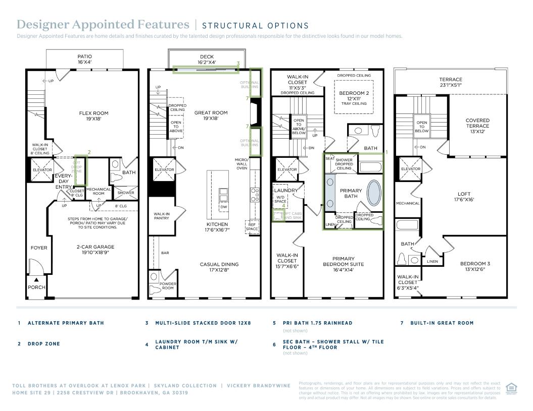 Step into luxury living with The Vickery. The inviting covered entry sets the tone for warmth and comfort as you enter. Designed for seamless living, the flow from the spacious flex room to the second-floor main living area offers an expansive great room, casual dining space, and a covered large deck with multi-slide stacked doors—perfect for everyday living and entertaining. The centerpiece of this home is the well-appointed kitchen, featuring a large center island with a breakfast bar for effortless meal preparation. Retreat to the luxurious primary bedroom suite on the third floor, complete with dual walk-in closets and a spa-like primary bath with dual vanities, a spacious luxe shower with a seat, freestanding tub, and linen storage—all tailored for your ultimate comfort. Find serenity on the fourth floor in your own private sanctuary, featuring an additional bedroom, shared hall bath, and a generous loft overlooking the partially covered rooftop terrace—offering a cozy and secluded space to unwind and relax.