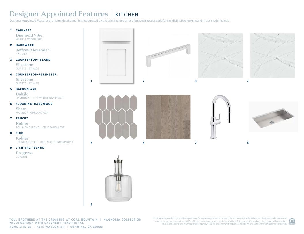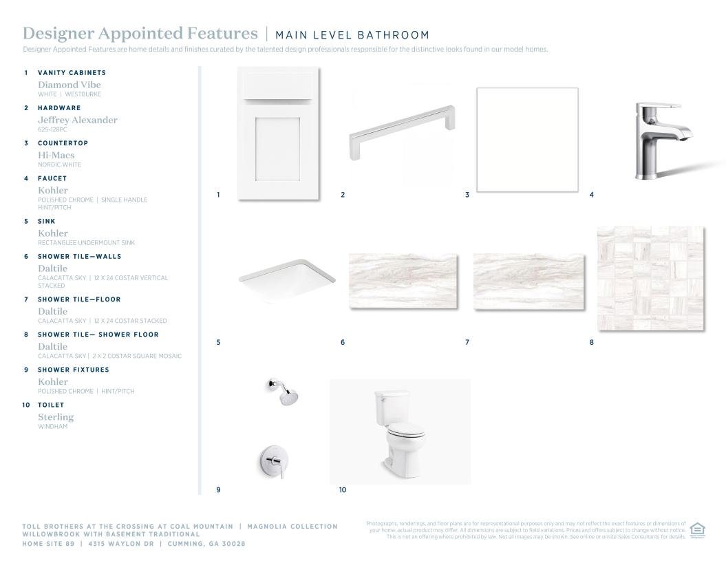 Toll Brothers Designer Appointed Collections are professionally curated selections of fixtures and finishes that come together to create a cohesive, distinctive look for a home. Learn More