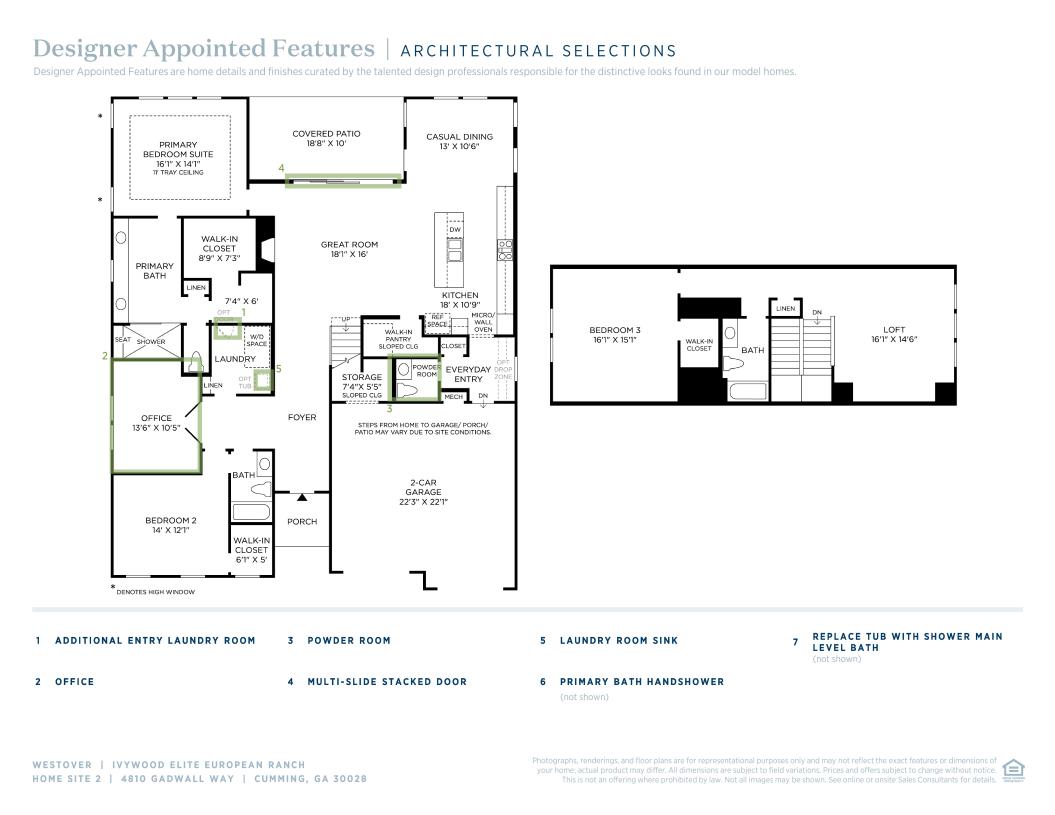 The Ivywood Elite leaves a lasting impression with its desirable blend of luxury and charm. An alluring extended foyer reveals the gorgeous great room covered patio with views of a cozy casual dining area. Highlighted by a large center island with breakfast bar the kitchen is well-equipped with ample counter and cabinet space as well as a roomy walk-in pantry. An elegant tray ceiling defines the impressive primary bedroom suite, featuring a sizable walk-in closet and a spa-like primary bath complete with a dual-sink vanity, a large luxe shower with seat, linen storage, and a private water closet. Adjacent to a sizable flex room, the secondary bedroom features a walk-in closet and a shared hall bath. Secluded on the second floor, an additional bedroom with a walk-in closet and shared hall bath is central to a generous loft. Additional highlights include easily accessible laundry, an everyday entry, and ample additional storage.