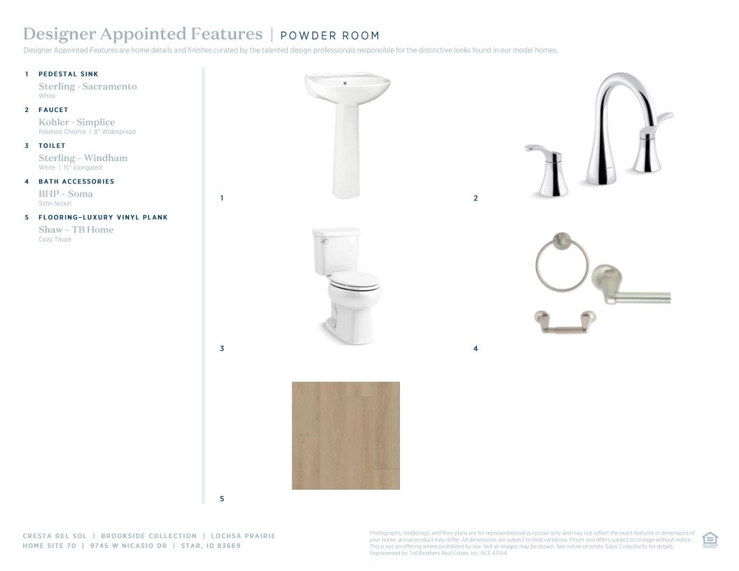 Toll Brothers Designer Appointed Collections are professionally curated selections of fixtures and finishes that come together to create a cohesive, distinctive look for a home. Learn More