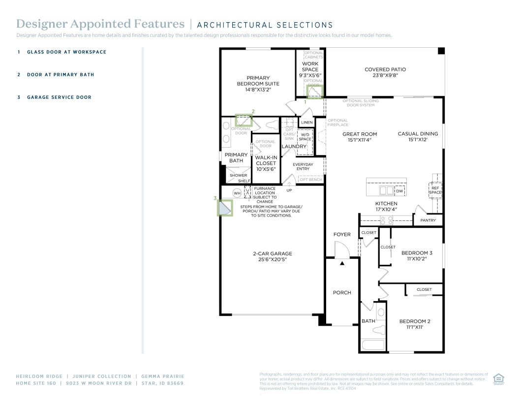 Discover the exquisite Gemma home design, offering a perfect blend of luxury and functionality. This single-family residence boasts an open floor plan that creates a seamless flow throughout. As soon as guests enter through the welcoming foyer, they are greeted by the spacious great room. Entertaining is made easy with the adjacent casual dining area that opens up to a covered patio, ideal for indoor-outdoor living. As well as a well-appointed kitchen. Retreat to the private primary suite, complete with a luxurious shower in the primary bath and a separate private water closet. Two additional bedrooms provide ample space for family or guests, while the laundry room adds practicality to everyday life.