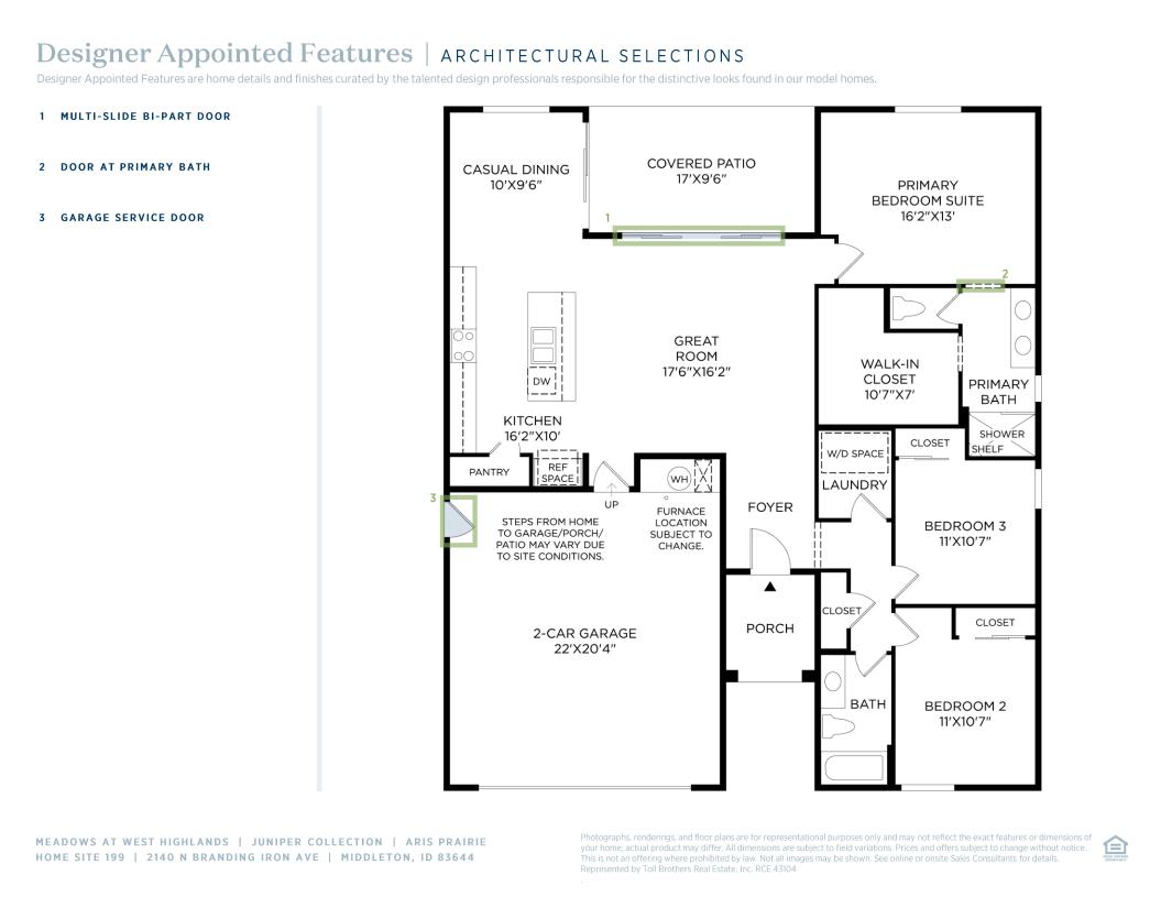 Welcome to the Aris home design, a modern and inviting residence that offers comfortable living spaces and thoughtful amenities. Step through the foyer into the spacious great room, perfect for gathering with family and friends. Adjacent is a casual dining area, ideal for enjoying meals together or hosting small gatherings. With a convenient everyday entry from the garage, coming home has never been easier. Retreat to the primary suite which boasts a private bathroom with dual sinks and a separate water closet for added privacy. You'll also find a generous walk-in closet providing ample storage space. Additionally, this home features two more bedrooms, another full bathroom, and a dedicated laundry room.
