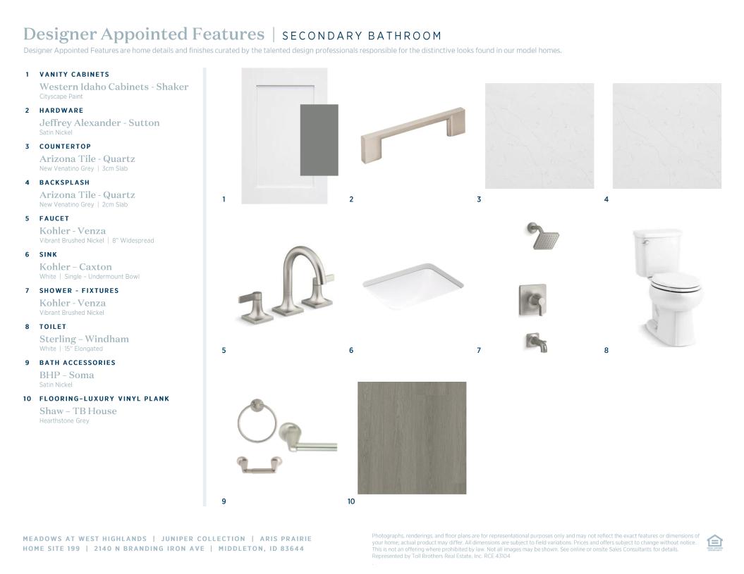 Toll Brothers Designer Appointed Collections are professionally curated selections of fixtures and finishes that come together to create a cohesive, distinctive look for a home. Learn More