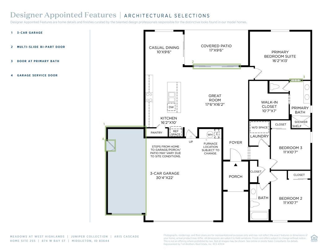 Welcome to the Aris home design, a modern and inviting residence that offers comfortable living spaces and thoughtful amenities. Step through the foyer into the spacious great room, perfect for gathering with family and friends. Adjacent is a casual dining area, ideal for enjoying meals together or hosting small gatherings. With a convenient everyday entry from the garage, coming home has never been easier. Retreat to the primary suite which boasts a private bathroom with dual sinks and a separate water closet for added privacy. You'll also find a generous walk-in closet providing ample storage space. Additionally, this home features two more bedrooms, another full bathroom, and a dedicated laundry room.