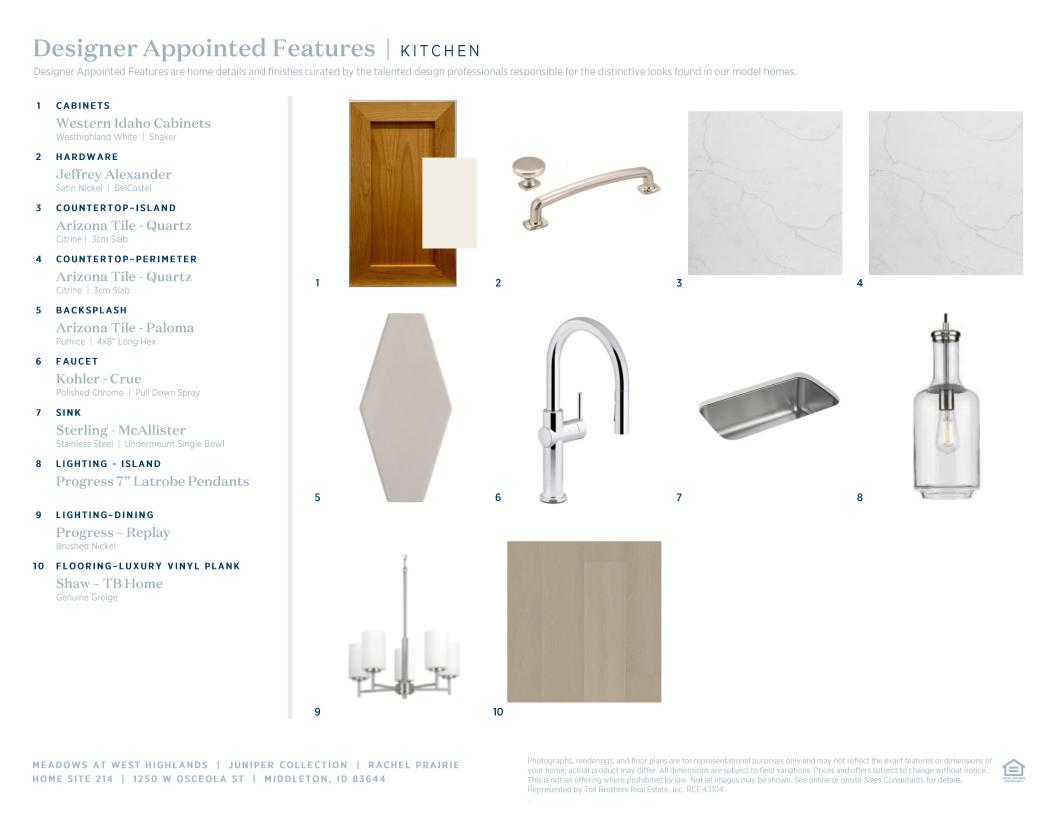 Toll Brothers Designer Appointed Collections are professionally curated selections of fixtures and finishes that come together to create a cohesive, distinctive look for a home. Learn More