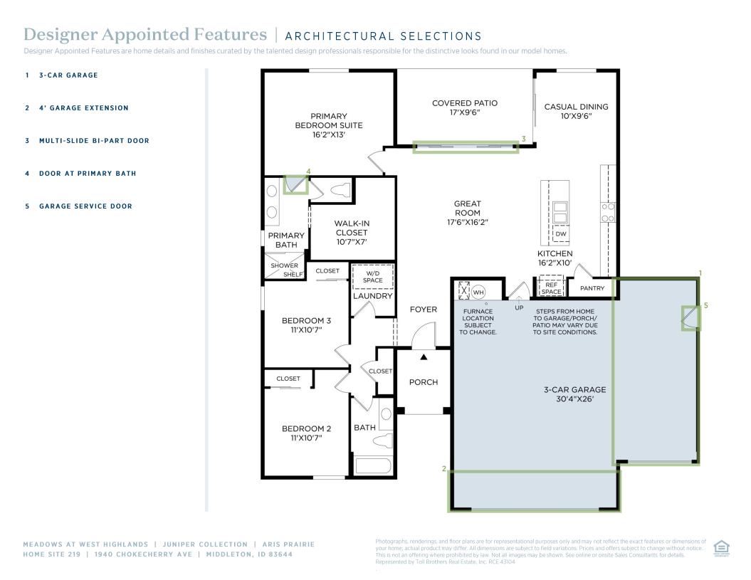 Welcome to the Aris home design, a modern and inviting residence that offers comfortable living spaces and thoughtful amenities. Step through the foyer into the spacious great room, perfect for gathering with family and friends. Adjacent is a casual dining area, ideal for enjoying meals together or hosting small gatherings. With a convenient everyday entry from the garage, coming home has never been easier. Retreat to the primary suite which boasts a private bathroom with dual sinks and a separate water closet for added privacy. You'll also find a generous walk-in closet providing ample storage space. Additionally, this home features two more bedrooms, another full bathroom, and a dedicated laundry room.