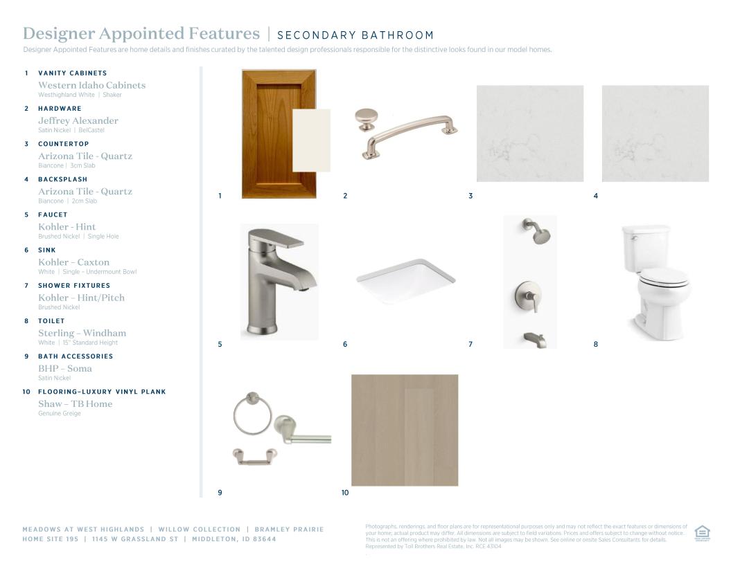 Toll Brothers Designer Appointed Collections are professionally curated selections of fixtures and finishes that come together to create a cohesive, distinctive look for a home. Learn More