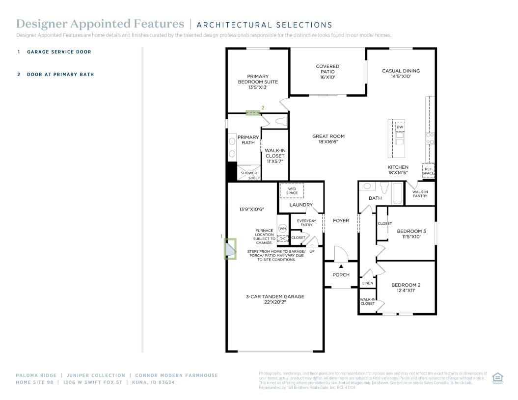 Enjoy single-level living at its finest in this thoughtfully designed home. The beautiful kitchen, featuring wraparound counter space and a spacious central island, overlooks the great room and casual dining area—ideal for entertaining. The expansive primary suite includes a luxurious bath and generous closet space. In the surrounding community, you'll find open green spaces and scenic walking trails to enjoy year-round. Schedule an appointment to learn more about this exceptional home.