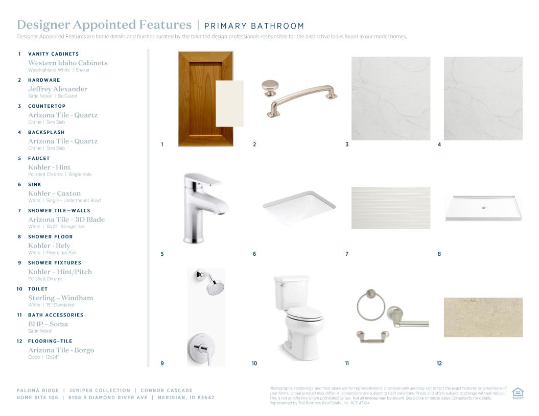 Toll Brothers Designer Appointed Collections are professionally curated selections of fixtures and finishes that come together to create a cohesive, distinctive look for a home. Learn More