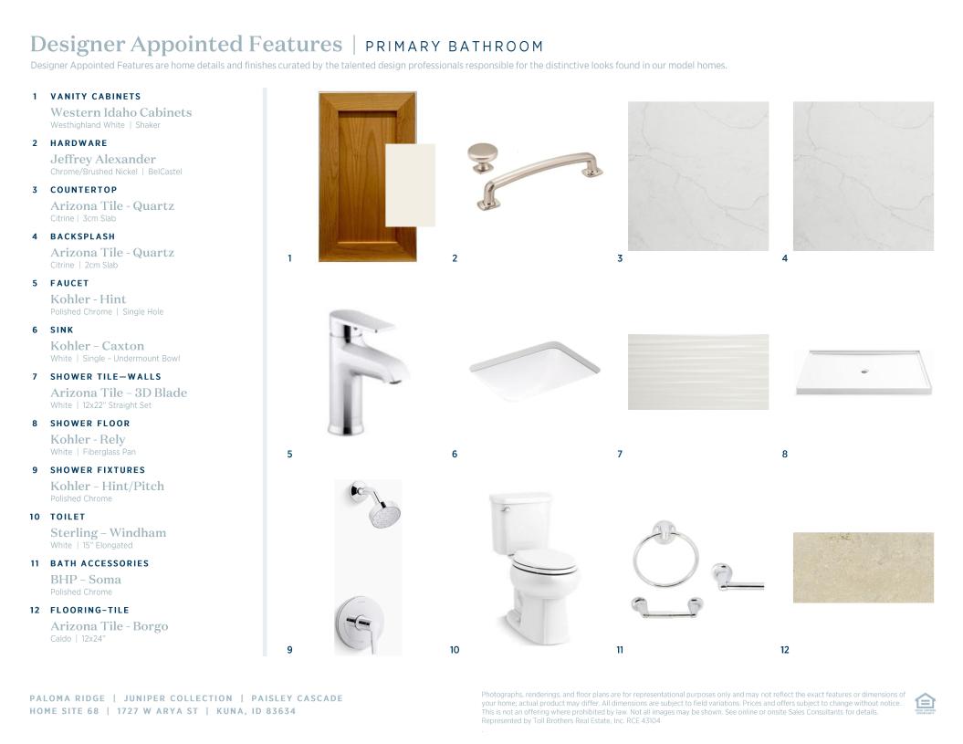 Toll Brothers Designer Appointed Collections are professionally curated selections of fixtures and finishes that come together to create a cohesive, distinctive look for a home. Learn More