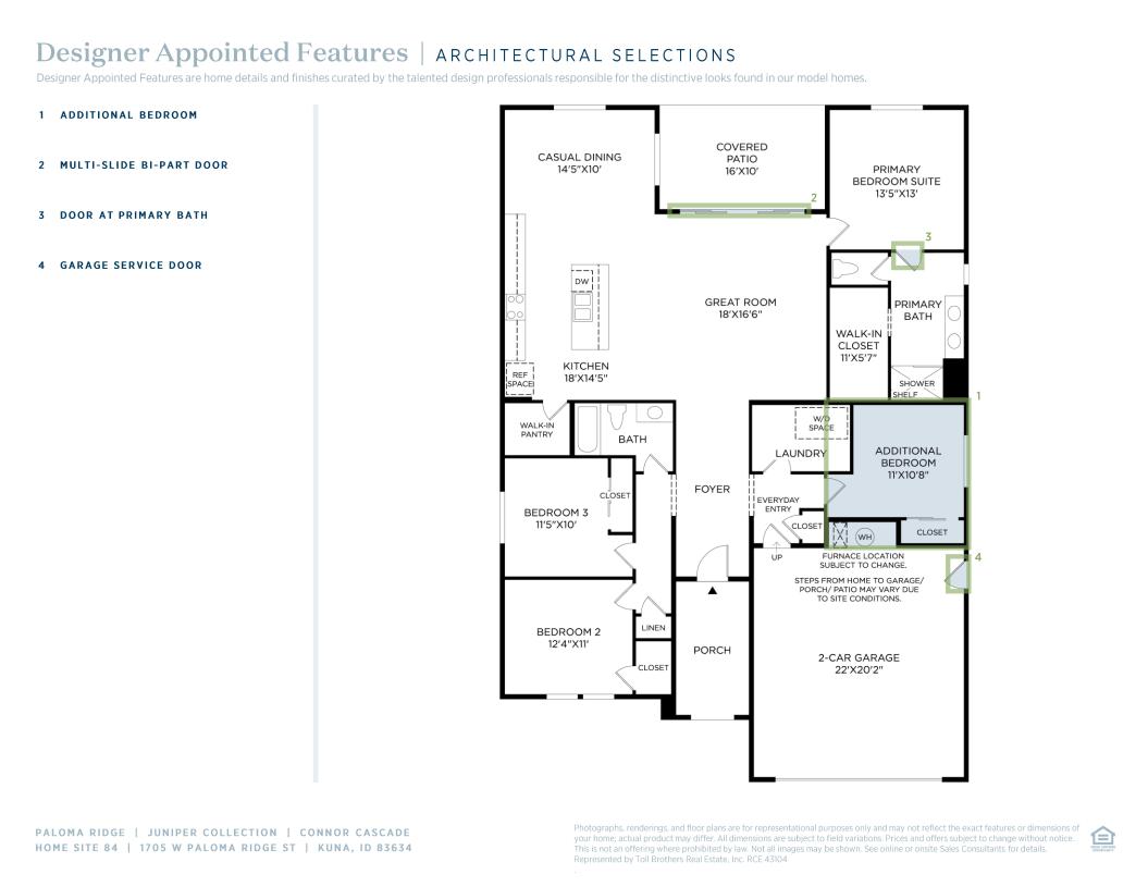 The Connor home design is the epitome of luxury living, featuring an open floor plan that maximizes space and functionality. As soon as one enters through the foyer, they are greeted with a great room that impresses beyond measure. Adjacent to this is an exquisite casual dining area and kitchen equipped with a large island perfect for preparing gourmet meals. A walk-in pantry provides ample storage for all your cooking needs while the everyday entry ensures convenience in every aspect of life. This single family home boasts a primary suite complete with dual sink vanity, luxurious shower, walk-in closet ensuring privacy from other rooms in the house. There is also outdoor living space where owners can enjoy sunsets or entertain guests on covered patios.