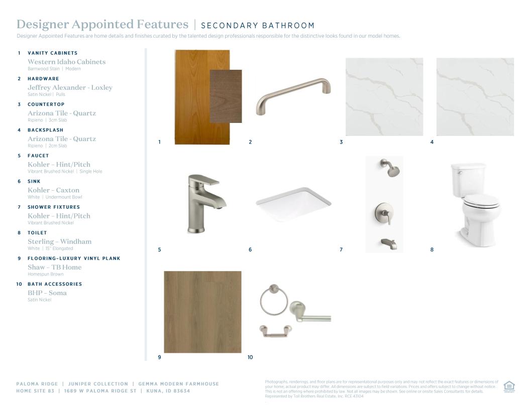 Toll Brothers Designer Appointed Collections are professionally curated selections of fixtures and finishes that come together to create a cohesive, distinctive look for a home.  Learn More