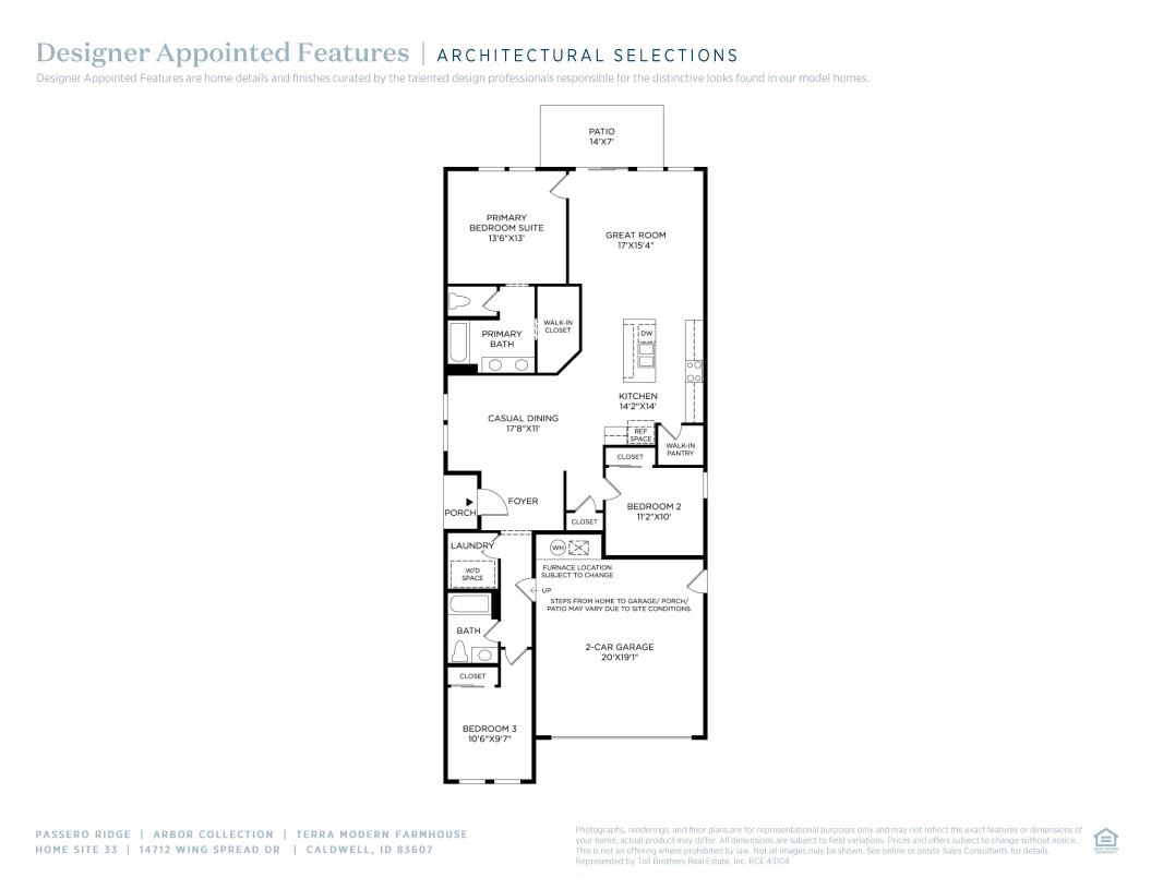 The Terra's design features a thoughtful flow and wonderful spaces for gathering and relaxing. A welcoming foyer reveals a sizable casual dining area with lovely views to the expansive great room and desirable rear patio, perfect for entertaining. Completing the well-appointed kitchen is an oversized center island with breakfast bar, plenty of counter and cabinet space, and a roomy walk-in pantry. The gorgeous primary bedroom suite is enhanced by a spacious walk-in closet and an alluring primary bath with a dual-sink vanity, a large luxe shower, and a private water closet. The secondary bedrooms feature ample closets and a shared hall bath. Additional highlights include easily accessible laundry and plenty of additional storage.