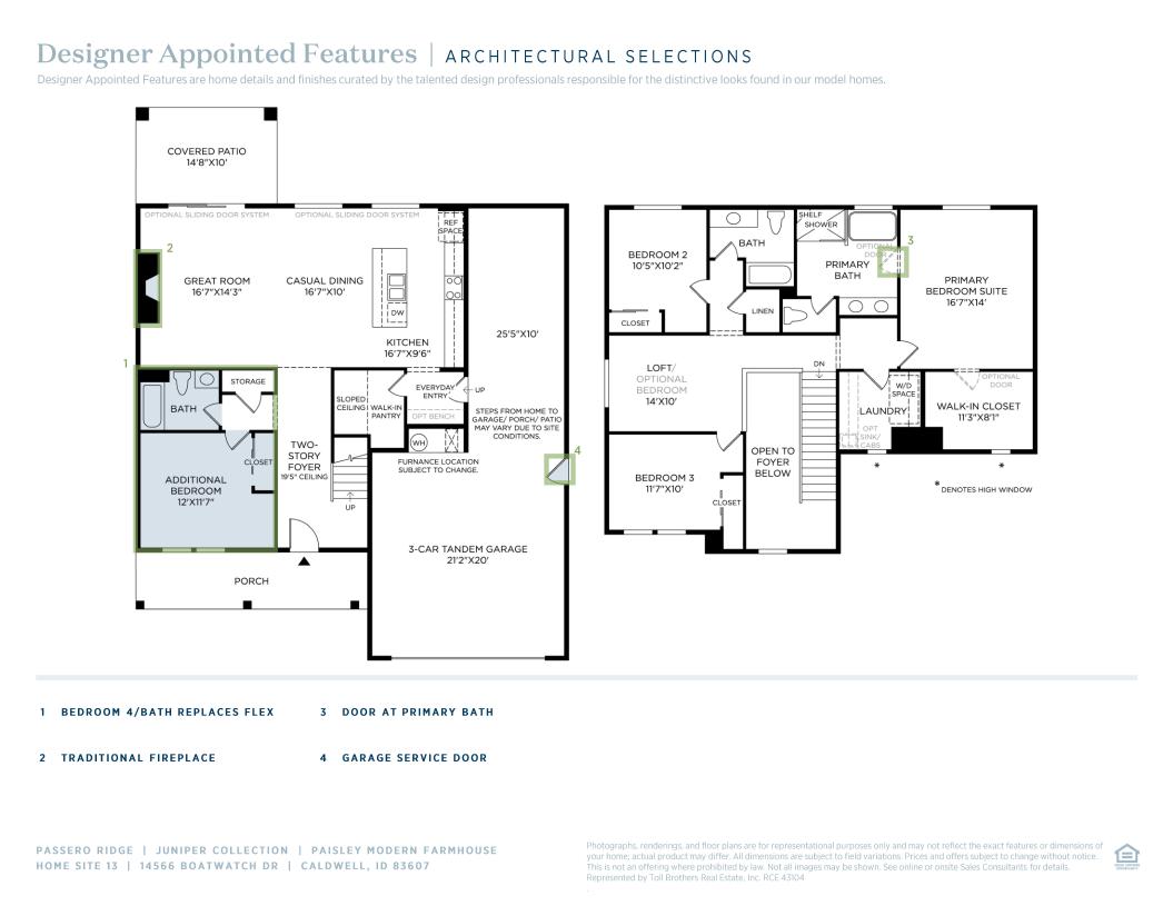 The Paisley home design is a stunning two-story single-family residence that features an open floor plan, perfect for entertaining and family gatherings. Upon entering the two-story foyer, guests are greeted by a spacious great room with adjoining casual dining area and chef-inspired kitchen complete with island seating, walk-in pantry, and plenty of counter space. A versatile flex room on the main level can be used as a den or office to suit your needs. Upstairs, the luxurious primary suite offers the ultimate escape with its spa-like bath featuring dual-sink vanity, shower with tiled walls, and separate soaking tub. An enormous walk-in closet completes this beautiful retreat. Additional secondary bedrooms share access to another full hall bath and convenient bedroom-level laundry.
