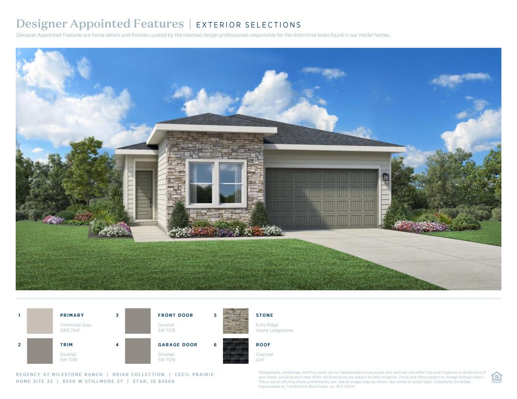 Defined by its modern architecture and a desirable open-concept floor plan, the Cecil is the epitome of luxury. An inviting foyer reveals a gorgeous great room and casual dining area that presents views of the rear covered patio. Complementing the expertly designed kitchen is a large center island with breakfast bar, plenty of counter and cabinet space, and a sizable walk-in pantry. The serene primary bedroom suite is secluded off the great room and is enhanced by a generous walk-in closet and a spa-like primary bath with dual-sink vanity, a large luxe shower with seat, and a private water closet. Off the foyer, the sizable secondary bedroom features a roomy closet and a shared hall bath. Additionally featured in the Cecil is easily accessible laundry, an everyday entry, and plenty of additional storage.