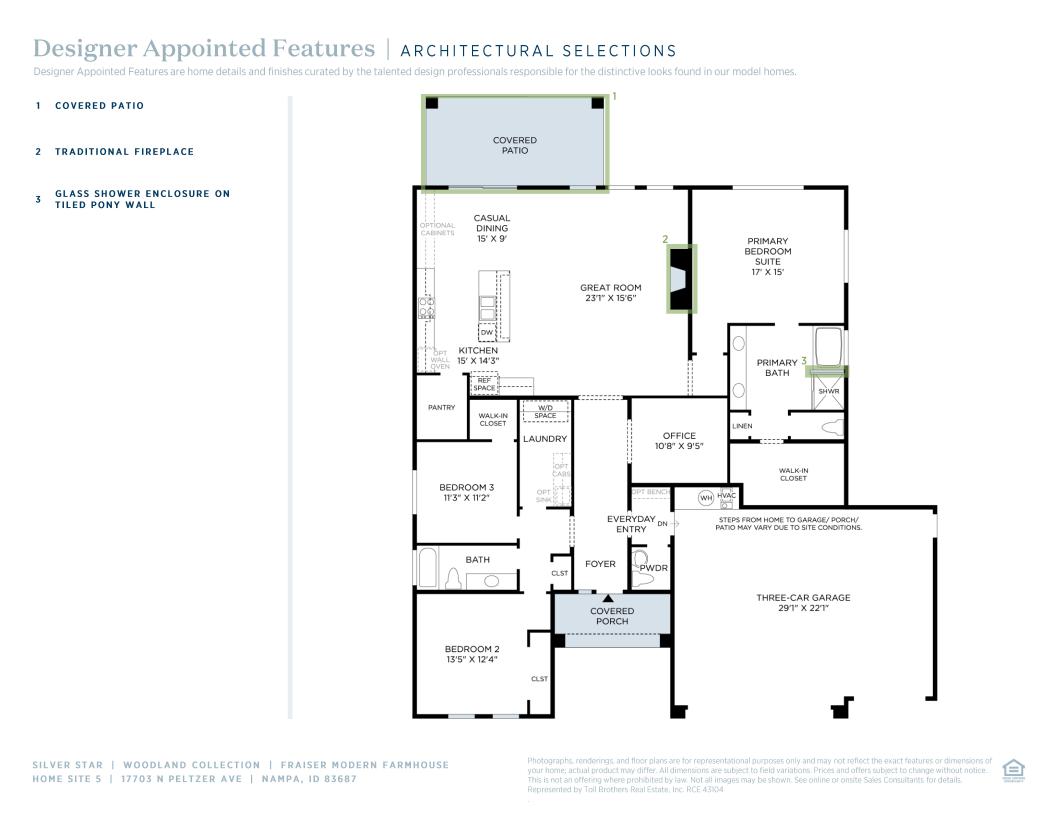 An inviting foyer and flex room flow into the Brennan's expansive great room and casual dining area with desirable covered patio access. Adjacent, the well-designed kitchen is complete with a large center island with breakfast bar, ample counter and cabinet space, and a generous pantry. The magnificent primary bedroom is enhanced by a spacious walk-in closet and an alluring primary bath with a dual-sink vanity, a large soaking tub, a luxe shower, and a private water closet. Secondary bedrooms feature walk-in closets and share a hall bath. Additional highlights include a conveniently located laundry off the everyday entry and plenty of additional storage.