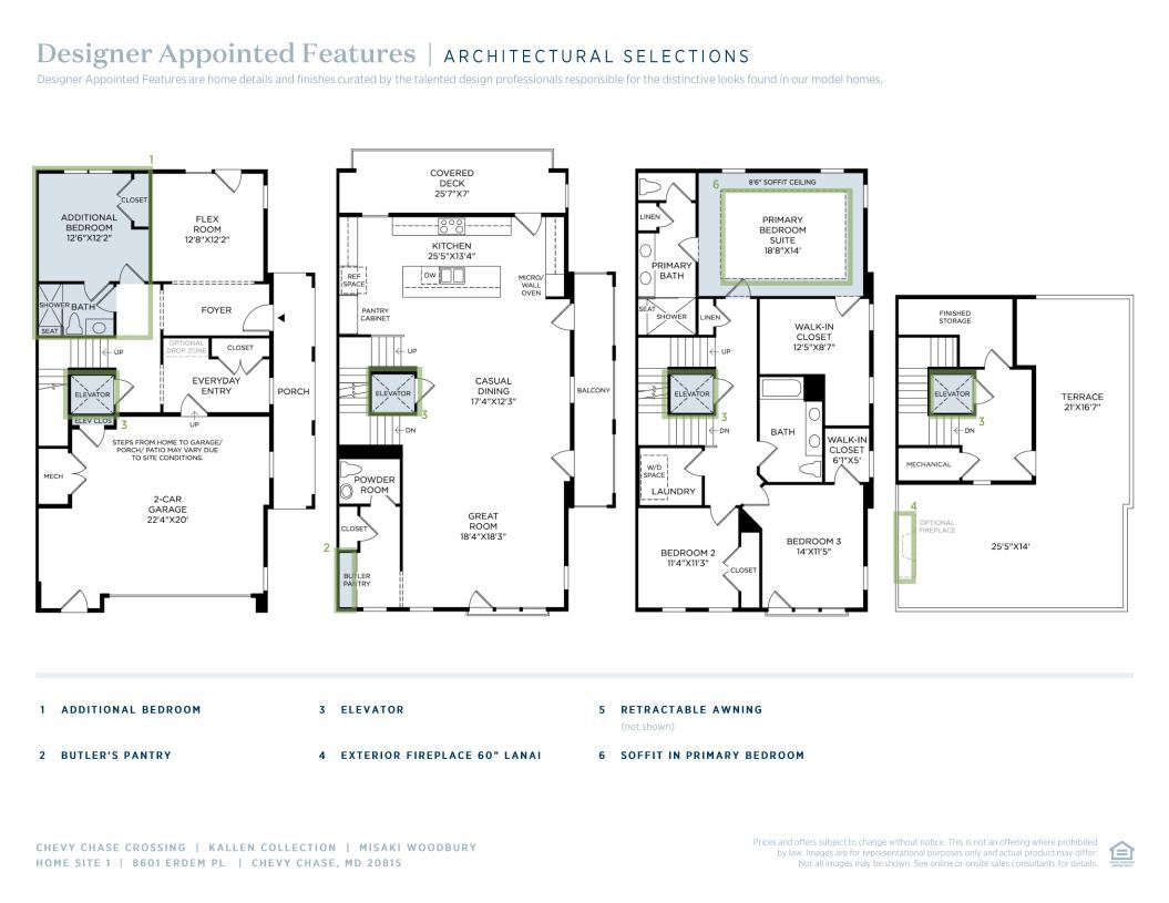 This home offers an exceptional fusion of sophistication and comfort across four expansive levels, elevating your lifestyle at every turn. The inviting foyer sets the tone for the home, leading into a versatile flex room that can be customized to suit any need. On the first floor, a bedroom with a full bath provides convenient guest accommodations. An elevator serves all levels, ensuring ease and accessibility. The second floor opens to an airy great room and a casual dining area, both bathed in natural light from a stunning balcony. The chef-inspired kitchen is equipped with stainless steel appliances and features a spacious island with a breakfast bar, abundant counter and cabinet space, and access to a charming covered deck. A well-appointed butler’s pantry off the Great Room offers an ideal space for storage and entertaining. Throughout the home, elegant oak-stained stairs have been added with sleek horizontal iron railings providing a timeless touch, adding to the home's refined aesthetic. The third floor houses the serene primary suite, complete with a generous walk-in closet and an elegant bath that boasts a dual-sink vanity, a luxe shower with a built-in seat, ample linen storage, and a private water closet. The suite is further enhanced by a soffit ceiling, adding to the sense of space and tranquility. Two secondary bedrooms, one with a walk-in closet, share a beautifully appointed full bath with a dual-sink vanity. The fourth floor features a remarkable rooftop terrace, perfect for entertaining or relaxing, with a cozy fireplace and a retractable awning to enjoy the outdoors in comfort year-round.