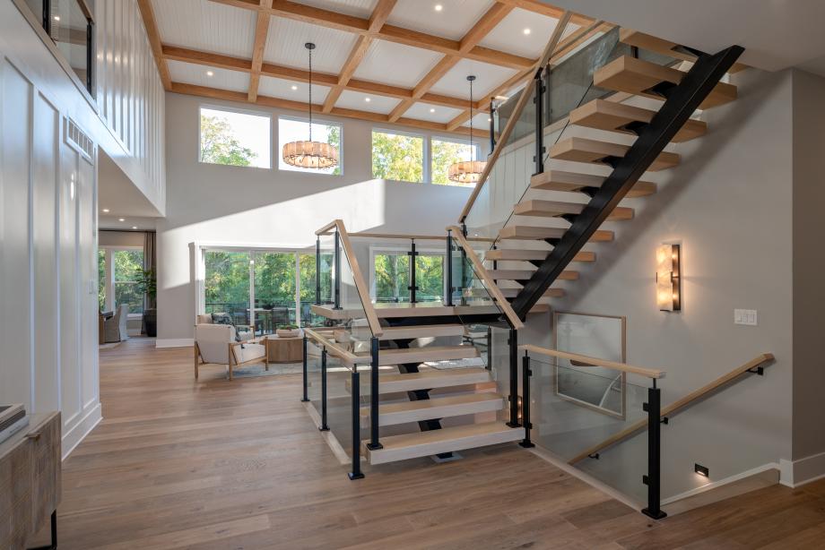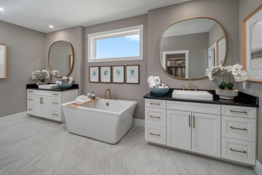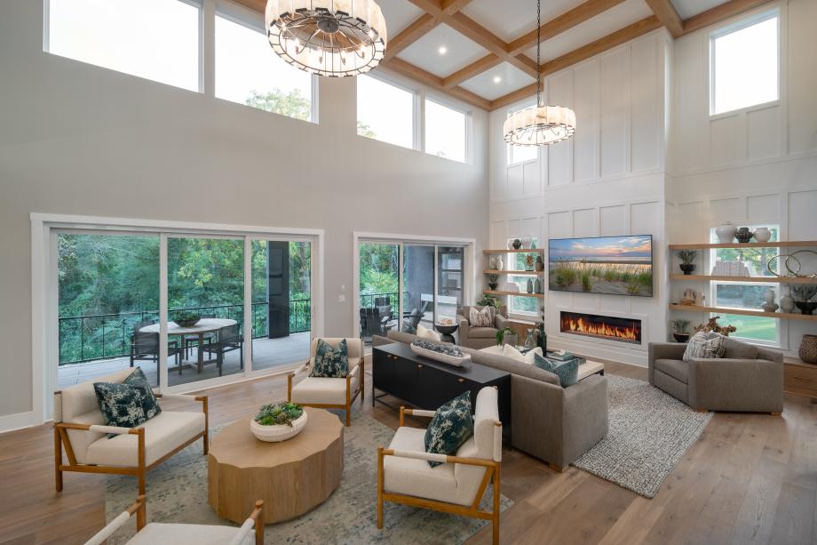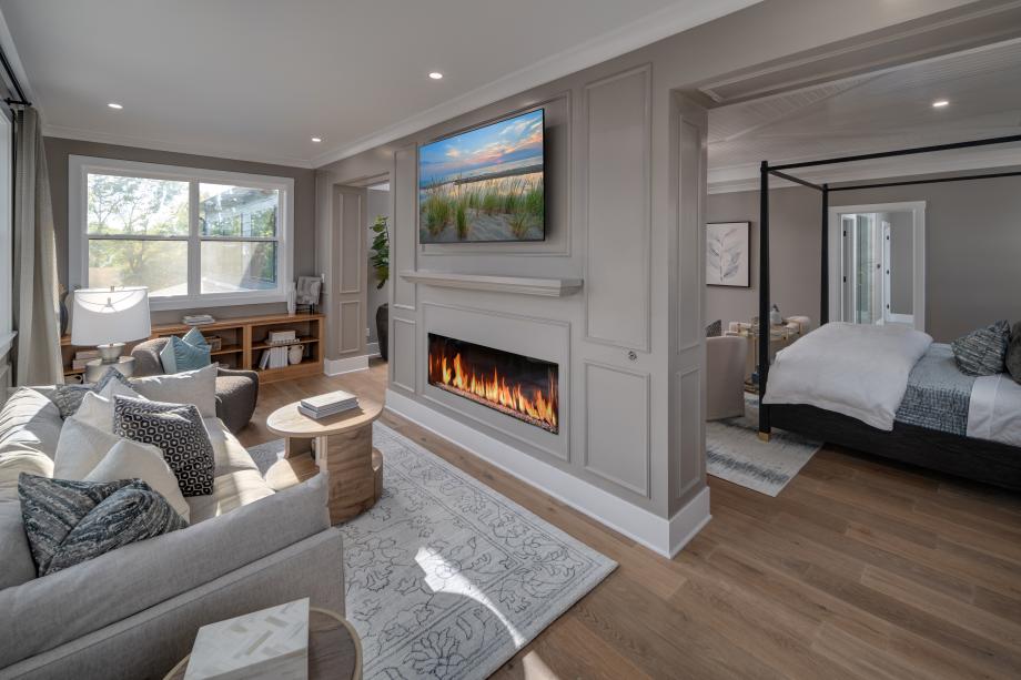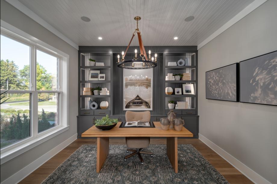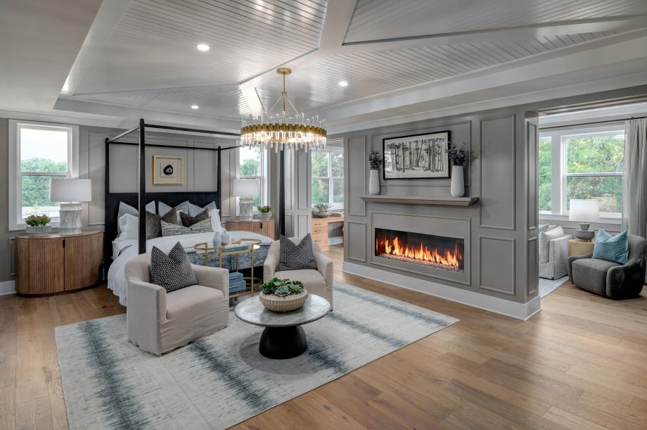 The incredible, award-winning Morenci Transitional model home is now available for sale with all designer furniture and decor included. The Morenci features a dramatic two-story foyer that introduces the extremely open floor plan, anchored by a floating staircase with sleek glass railings. The openness continues into the soaring two-story great room, where two multi-slide stacked doors showcase wooded views and provide seamless access to one of two covered patios. An open-air loft above overlooks the main level, enhancing the sense of space and architectural drama. At the heart of the home, the double island kitchen is both a showpiece and a workhorse—perfect for large families and effortless entertaining. Linen-painted cabinetry, quartzite waterfall islands, and glass-front uppers create a bright, elevated aesthetic, while the layout supports both gathering and function. The kitchen flows seamlessly into the great room, where layered rugs and floating furnishings define the space around a stunning paneled fireplace. Multiple gathering areas, including the incredible finished basement, offer connection and flexibility, while private retreats throughout the home ensure everyone has space to relax and recharge. The primary suite is a sanctuary, complete with a dual-sided fireplace, private sitting area, and spa-like bath featuring dual vanities and a luxurious shower. Every detail in this home has been designed to balance beauty, functionality, and comfort—an exceptional retreat for elevated family living. Don't miss out on this one-of-a-kind opportunity to live in a Toll Brothers model home!
