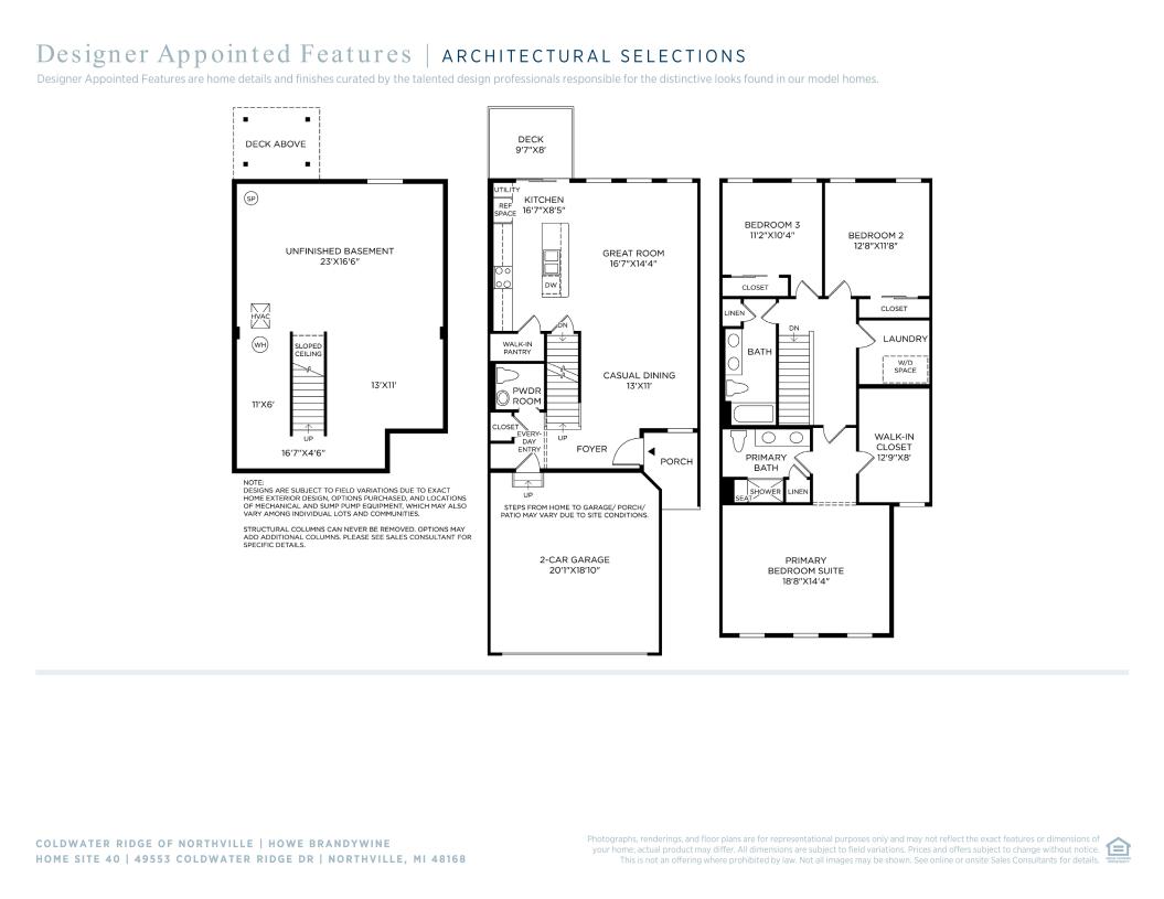 Blending luxury with style, the Howe leaves a lasting impression with an inviting foyer that immediately opens onto the bright, open-concept living level. A beautiful great room and casual dining space overlook an outdoor deck and the well-equipped kitchen that boasts a large center island, ample counter and cabinet space, as well as a spacious walk-in pantry. Secluded on the second level is an elegant primary bedroom suite with an expansive walk-in closet and a serene private bath complete with dual vanities and a luxurious shower with seat. Secondary bedrooms are sizable with roomy closets and a shared hall bath. Additional features include an everyday entry, powder room, convenient bedroom-level laundry, and plenty of storage throughout,