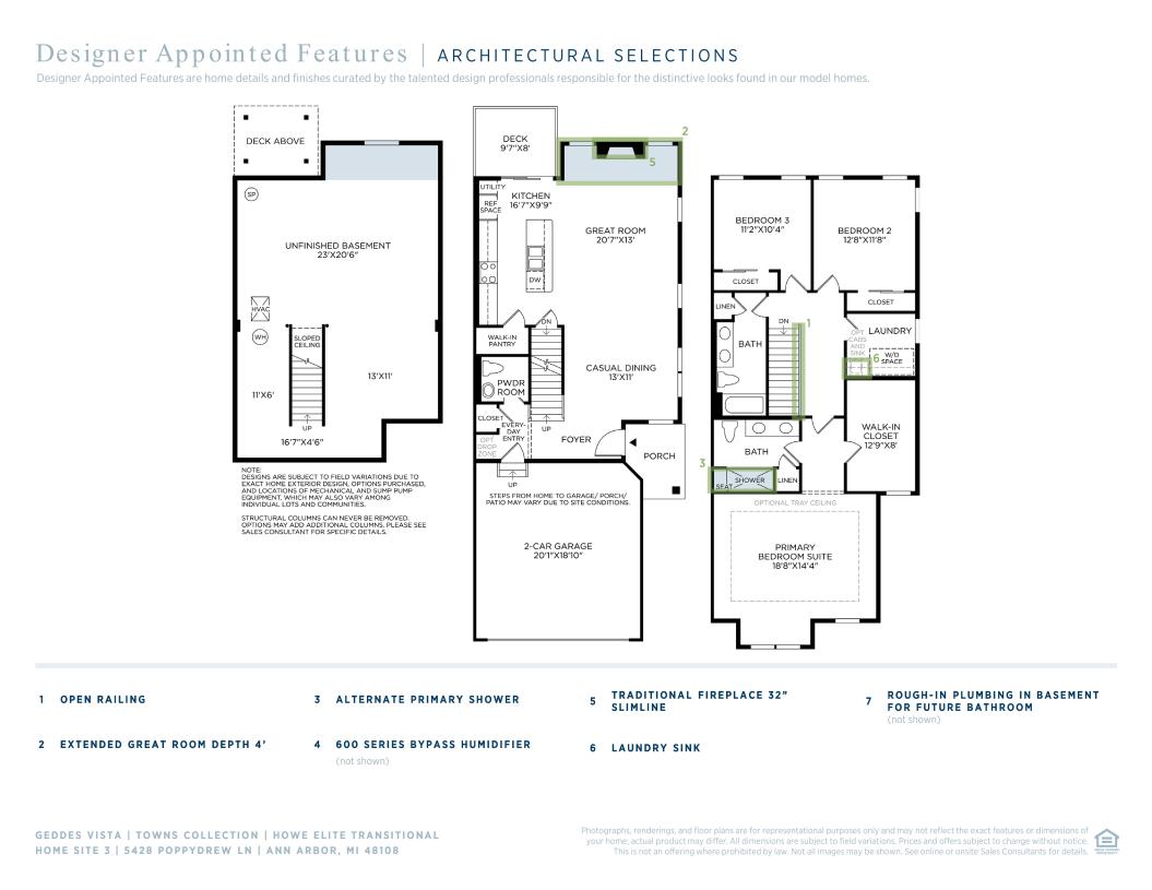 The elegant Howe Elite home design opens with a welcoming foyer that leads into a chic casual dining area and a light-filled great room. Just steps away, the well-equipped kitchen features a large center island, a walk-in pantry, and access to a relaxing deck. On the second floor, the stylish primary bedroom boasts a walk-in closet and a lovely primary bath offering a dual-sink vanity, linen storage, and a luxe shower with seat. Secondary bedrooms are conveniently located near a full hall bath with a dual sink vanity and linen storage. Other highlights include an everyday entry, a powder room, bedroom-level laundry, and extra storage throughout.