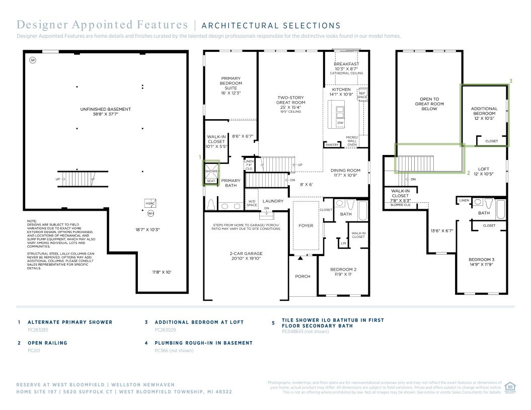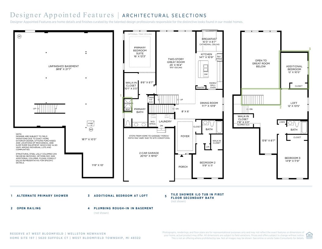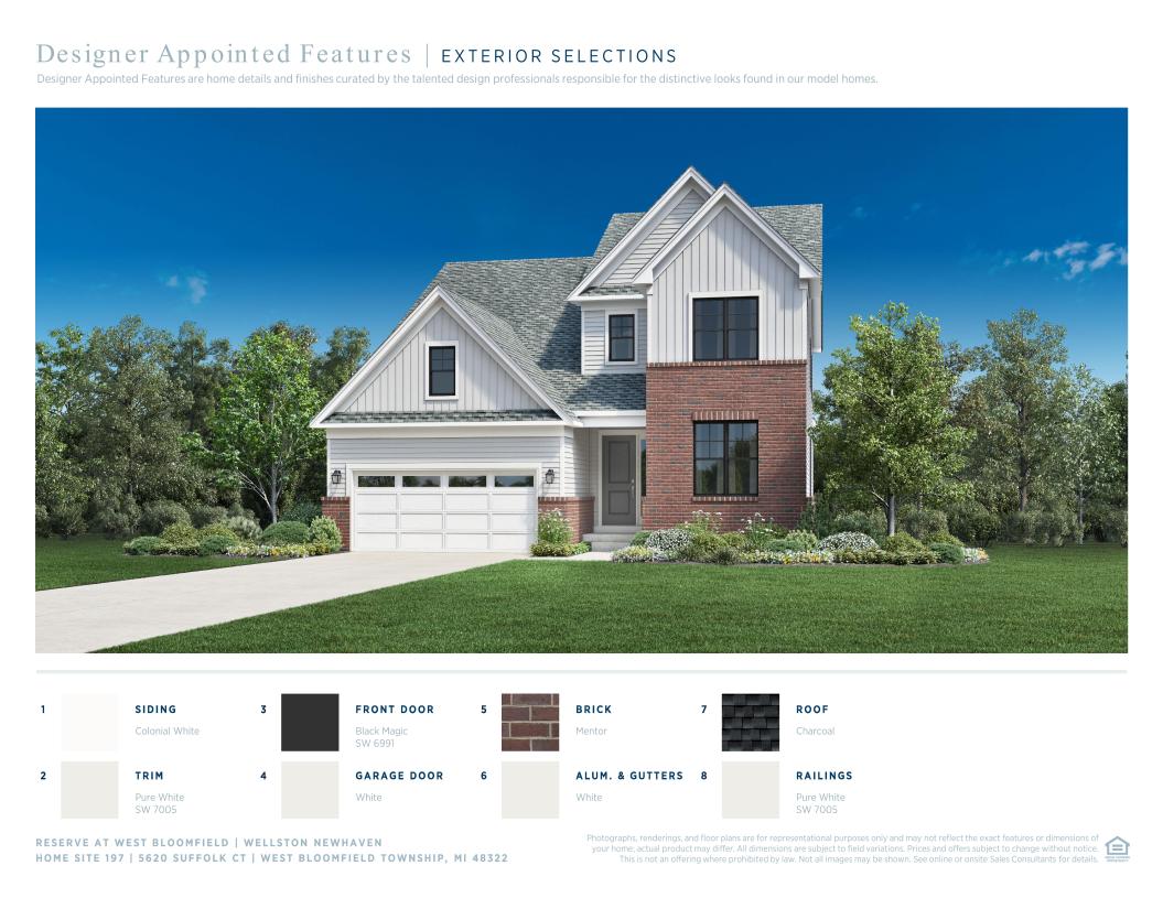 Perfectly designed for entertaining, the Wellston greets you with a large, elegant foyer with a tray ceiling that opens onto the formal dining room and a warm, inviting two-story great room. The well-appointed kitchen features a large center island and casual dining area with a cathedral ceiling. The spacious first-floor primary bedroom suite features a tray ceiling, roomy walk-in closet, and a primary bath with dual-sink vanity and luxe shower. On the second level, the generous loft provides a splendid view of the great room below and an additional bedroom with a full bath. Additional highlights include ten-foot ceilings throughout the first floor and a two-car garage.