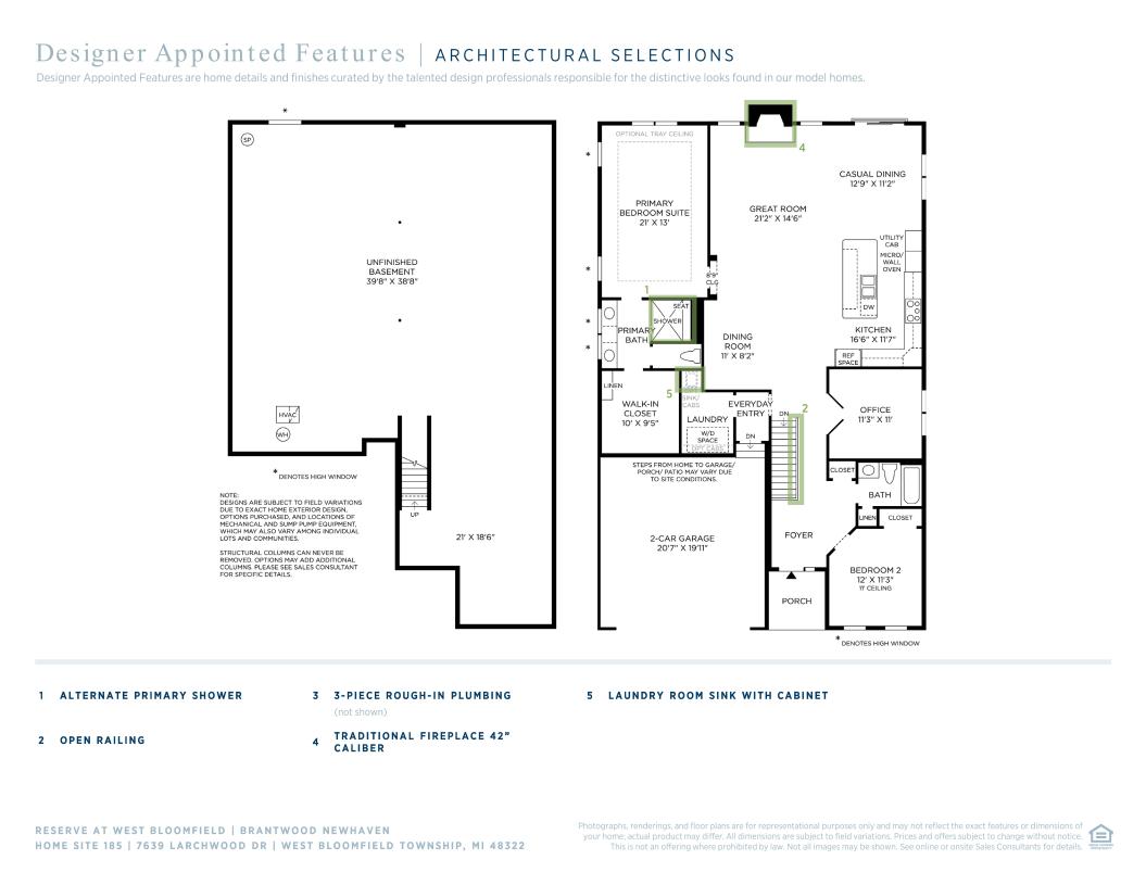 The elegantly designed Brantwood features an alluring single-level floor plan with luxury appointments. An impressive foyer flows up to the spacious great room and beyond. The well-designed kitchen overlooks a bright casual dining area and is equipped with a large center island and plenty of counter and cabinet space. The lovely primary bedroom suite is highlighted by a huge walk-in closet and spa-like primary bath with dual-sink vanity, luxe glass-enclosed shower with seat, and linen storage. The sizable secondary bedroom features a roomy closet and shared full hall bath. Additional highlights include a versatile office off the foyer, centrally located laundry, and additional storage throughout.