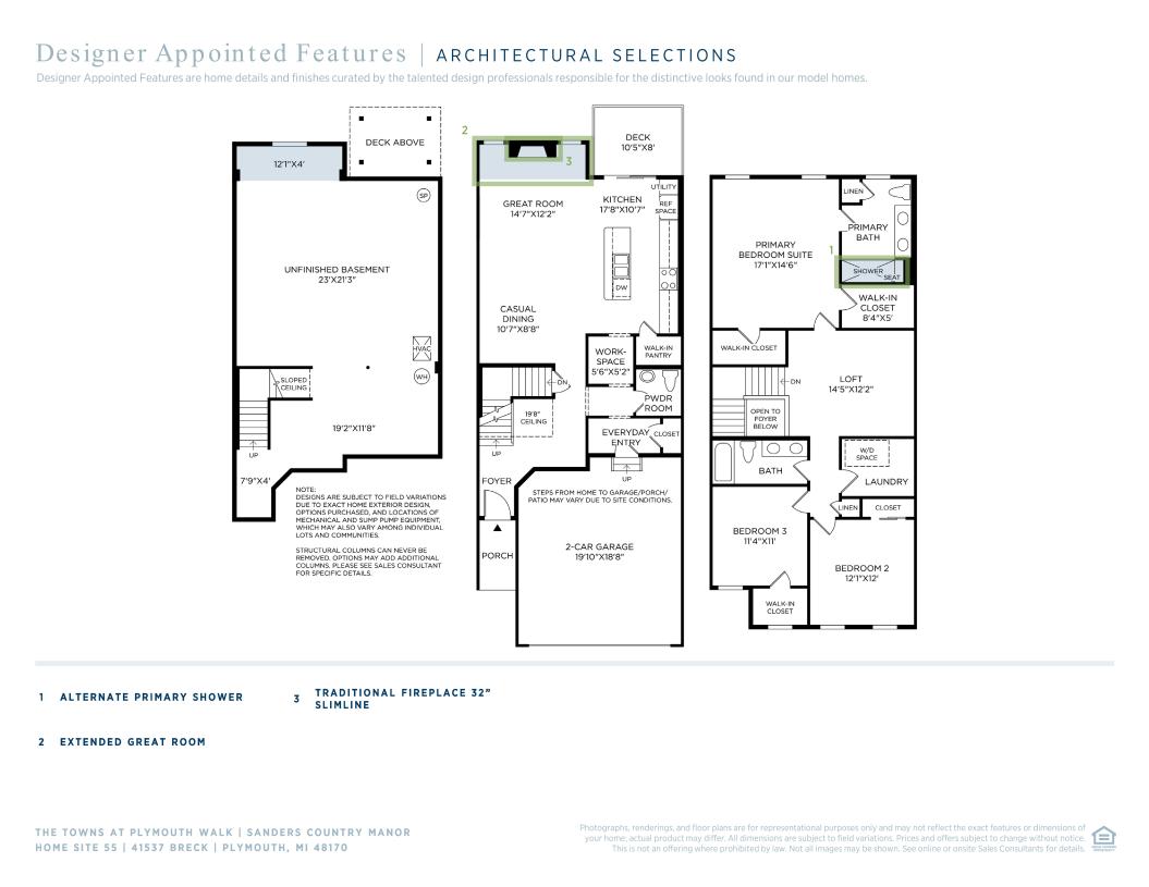 Step into the Sanders, a spacious two-story townhome offering an open floor plan that blends comfort with luxury. Upon entering, you are greeted by a charming foyer that flows into the spacious great room and casual dining area. Overlooking an outdoor deck, the expertly designed kitchen boasts a walk-in pantry and a large center island that makes entertaining effortless. Upstairs, you'll find a versatile loft alongside two secondary bedrooms, one with a walk-in closet, that share a hall bath. The elegant primary bedroom suite features dual walk-in closets and a serene private bath complete with dual vanities, a luxurious shower with seat, and linen storage. Additional highlights include bedroom-level laundry, a dynamic workspace off the kitchen, an everyday entry, powder room, and ample storage throughout.