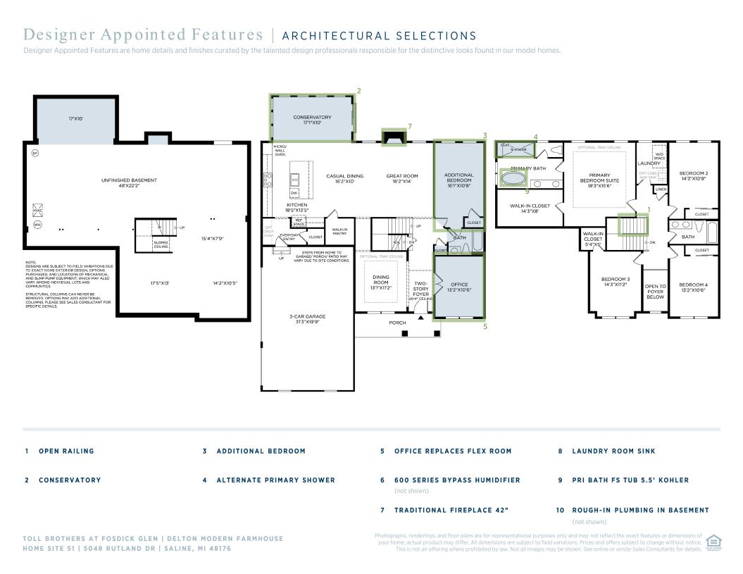 The Delton features flexible spaces and stunning architecture for a modern lifestyle. The soaring two-story foyer opens onto a versatile flex room and formal dining room, flowing into the expansive great room and casual dining area with desirable access to the rear yard. Highlighting the well-appointed kitchen is a large center island with breakfast bar, plenty of counter and cabinet space, walk-in pantry, as well as a convenient passthrough to the dining room. Secluded on the second floor, the superb primary bedroom suite is defined by a sizable walk-in closet and a serene primary bath featuring a dual-sink vanity, a large luxe shower with seat, and a private water closet. Secondary bedrooms are central to the easily accessible laundry space and feature large closets as well as a shared hall bath with a dual-sink vanity. A spacious office can be found off the great room and additional highlights include a convenient powder room, an everyday entry, and ample additional storage.