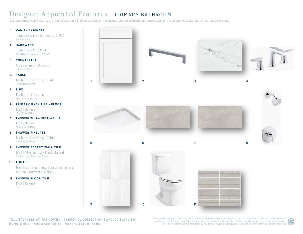 Toll Brothers Designer Appointed Collections are professionally curated selections of fixtures and finishes that come together to create a cohesive, distinctive look for a home. Learn More