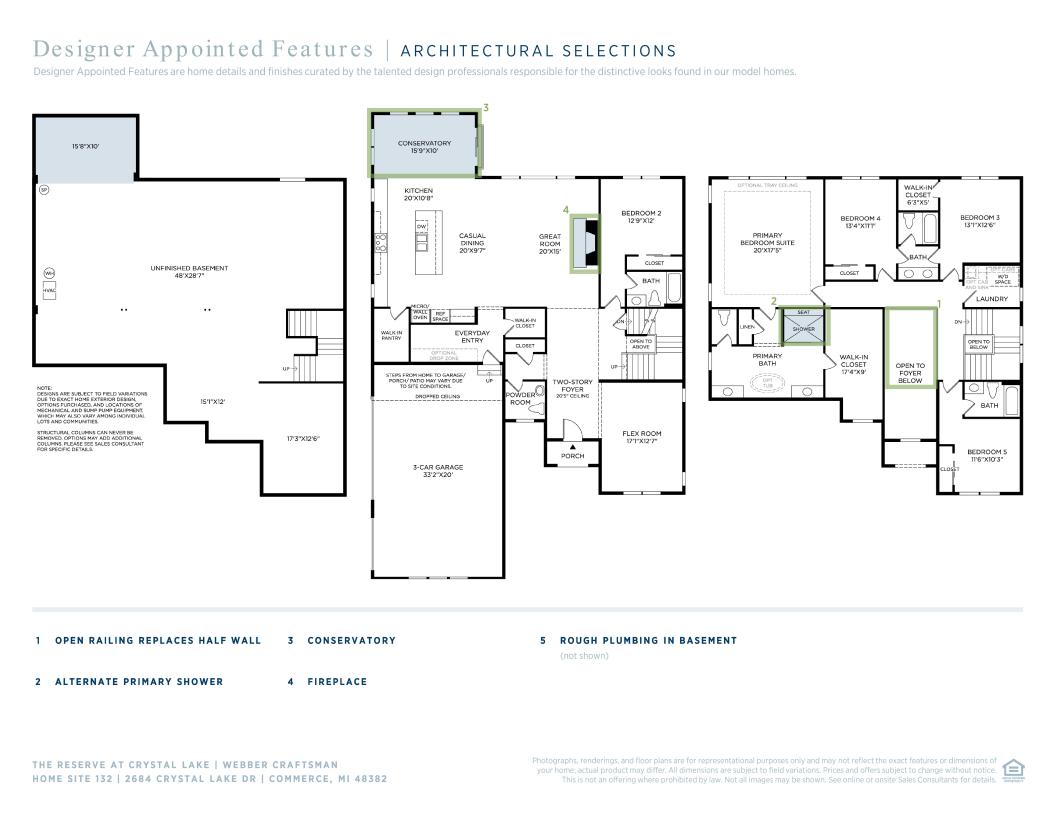 The Webber home design offers an impressive blend of style and functionality. Upon entering through a stunning two-story foyer, you are greeted by an open floor plan that seamlessly connects a cozy great room to the kitchen and a casual dining area. The kitchen is expertly appointed by a large center island and a sizable walk-in pantry. Upstairs, the primary bedroom suite exudes luxury with an expansive walk-in closet and a spa-inspired private bath with dual vanities, a large shower with seat, linen storage, and a private water closet. Secondary bedrooms, one with a private bath and two sharing a full bath, are also located on the second level, providing comfort and privacy for family members or guests. An additional bedroom is conveniently located on the first floor, offering an ample closet and a private bath. Also featured in the Webber is a versatile flex room in the front of the home, bedroom-level laundry, a powder room, an everyday entry, and plenty of added storage.