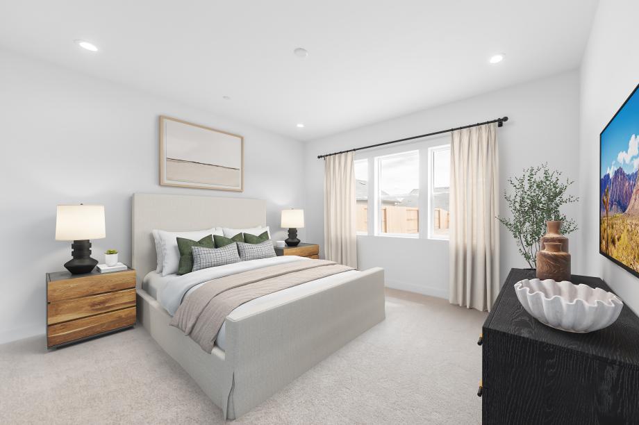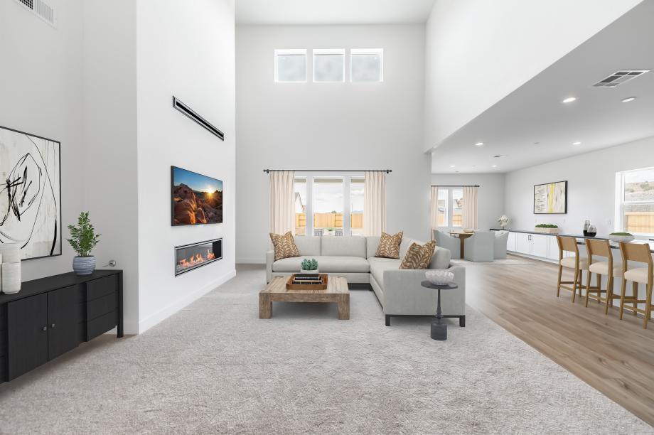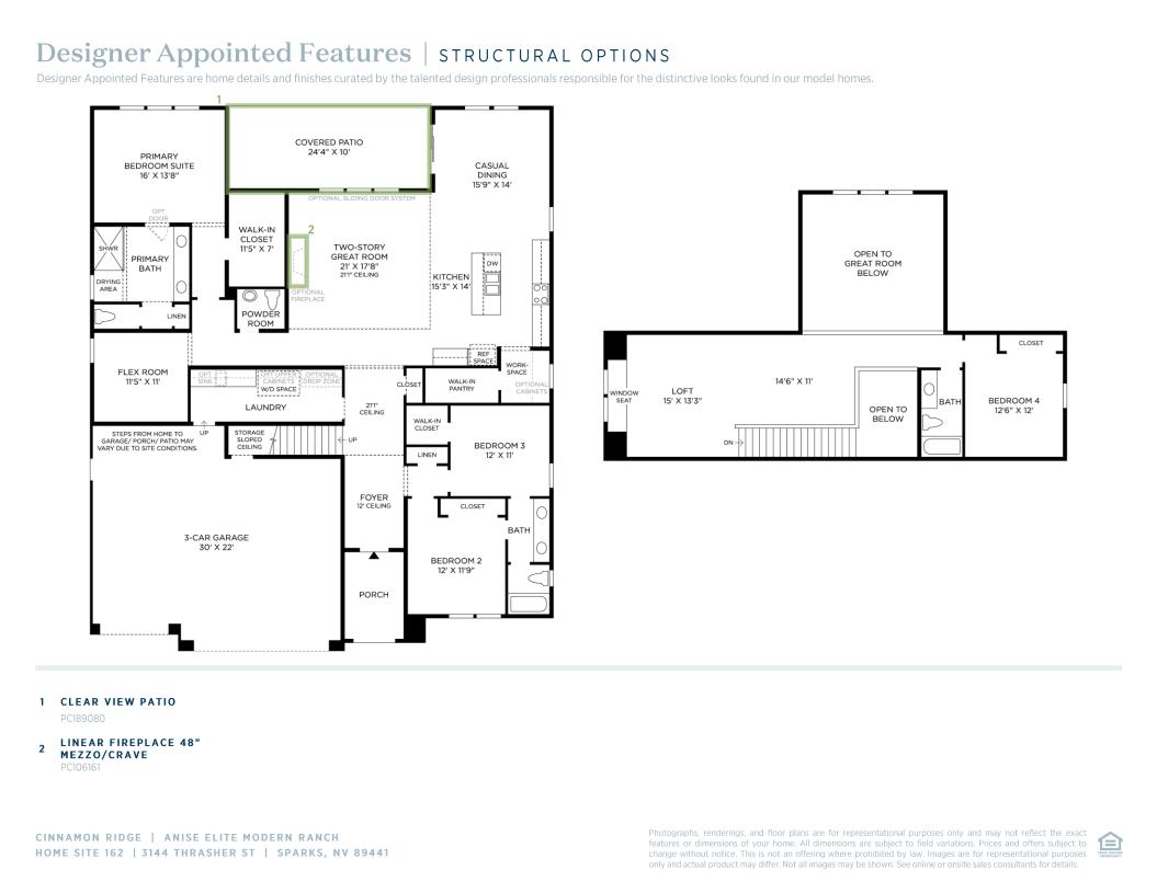 Through an elegant foyer hallway, a soaring two-story great room awaits with views to the desirable covered patio beyond. The bright casual dining area is set beside the well-designed kitchen, complete with a large center island with breakfast bar, plenty of counter and cabinet space, roomy walk-in pantry, and convenient workspace. Just past the laundry and convenient powder room, lies a secluded flex room. The private primary bedroom suite features a generous walk-in closet and gracefully designed primary bath with dual-sink vanity, large luxe shower with drying area, linen storage, and private water closet. Secondary bedrooms feature ample closets and shared bath with separate vanity area. Secluded on the second floor, an additional bedroom with closet and shared hall bath overlooks a distinctive oversized loft. Additional highlights include a spacious centrally located laundry and additional storage.