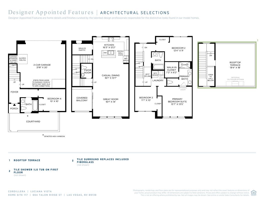 The Luciana's bright foyer and stairs lead to the open-concept main living level, where the kitchen takes center stage. Overlooking the great room and casual dining area with desirable outdoor living space, the well-appointed kitchen is complemented by a large center island with breakfast bar, wraparound counter and cabinet space, and sizable walk-in pantry. The primary bedroom suite is complete with an ample walk-in closet and beautiful primary bath with dual-sink vanity, large luxe shower, and private water closet. Secondary bedrooms feature roomy closets and shared hall bath. Additional highlights include a secluded first floor bedroom suite, convenient powder room on the second floor, centrally located laundry, and additional storage.