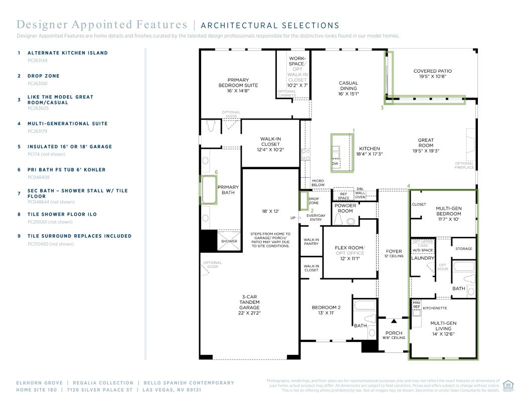 The Bello blends timeless design with practical comfort, offering spacious living and thoughtful details throughout. A welcoming foyer sets the stage, leading into a bright, open great room that flows effortlessly to a large covered patio—perfect for everyday living and entertaining alike. The kitchen is both stylish and functional, featuring a generous center island with seating, abundant cabinetry, expansive counter space, and a walk-in pantry for optimal storage. Just off the kitchen, a built-in workspace adds convenience for daily tasks or organization. Privately situated, the elegant primary suite offers a peaceful retreat with a large walk-in closet and a beautifully designed bathroom that includes dual vanities, a luxurious walk-in shower, a private water closet, and a soaking tub for relaxing at the end of the day. This home also includes a versatile multigenerational suite with its own living area and full bath, ideal for extended stays or long-term guests. An additional bedroom with an en-suite bath provides even more comfort and flexibility for family or visitors. Additional highlights include a spacious flex room, a powder bath, a convenient everyday entry, a dedicated laundry room, and ample storage throughout—creating a home that’s as functional as it is beautiful.
