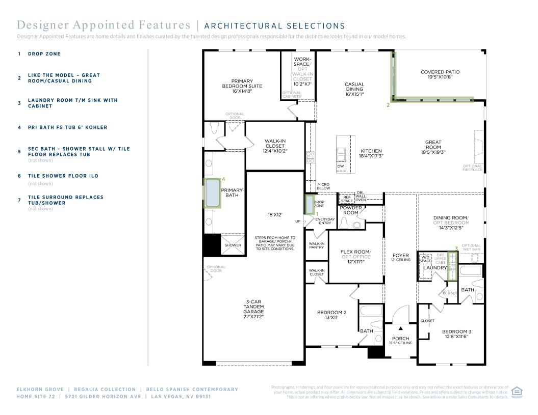 An open-concept floor plan with distinct architectural features define the charming Bello. A spacious foyer hallway reveals the stunning great room is accessible to the large covered patio and seamlessly flows into the formal dining room and casual dining area. The elegant kitchen offers impressive appointments including a center island with breakfast bar, plenty of counter and cabinet space, and a sizable walk-in pantry. Secluded off the kitchen, the lovely primary bedroom suite is complemented by an generous walk-in closet and gorgeous primary bath offering dual vanities, luxurious shower, and a private water closet. Secondary bedrooms are conveniently located off the foyer and feature roomy closets and private baths. A large, versatile flex room is additionally featured as well as a thoughtful workspace off the kitchen, powder room and everyday entry, easily accessible laundry, and ample storage throughout.