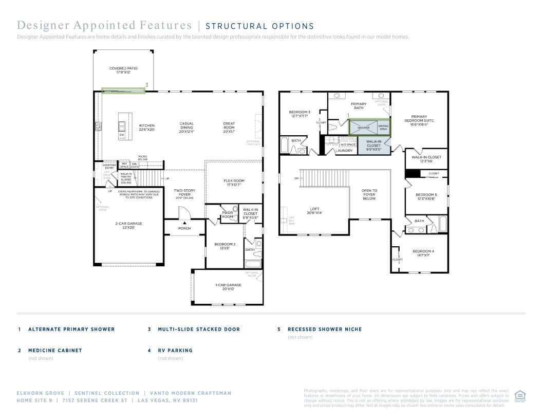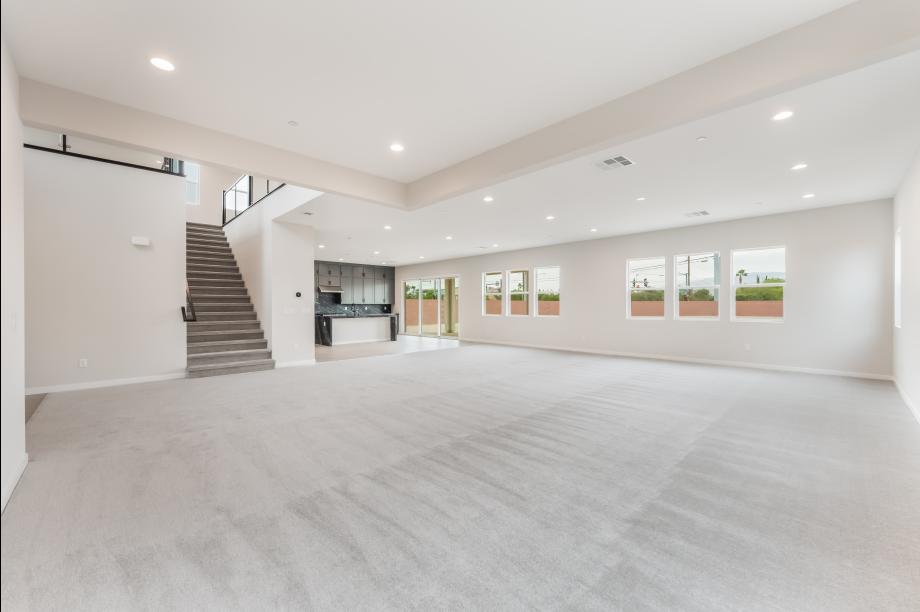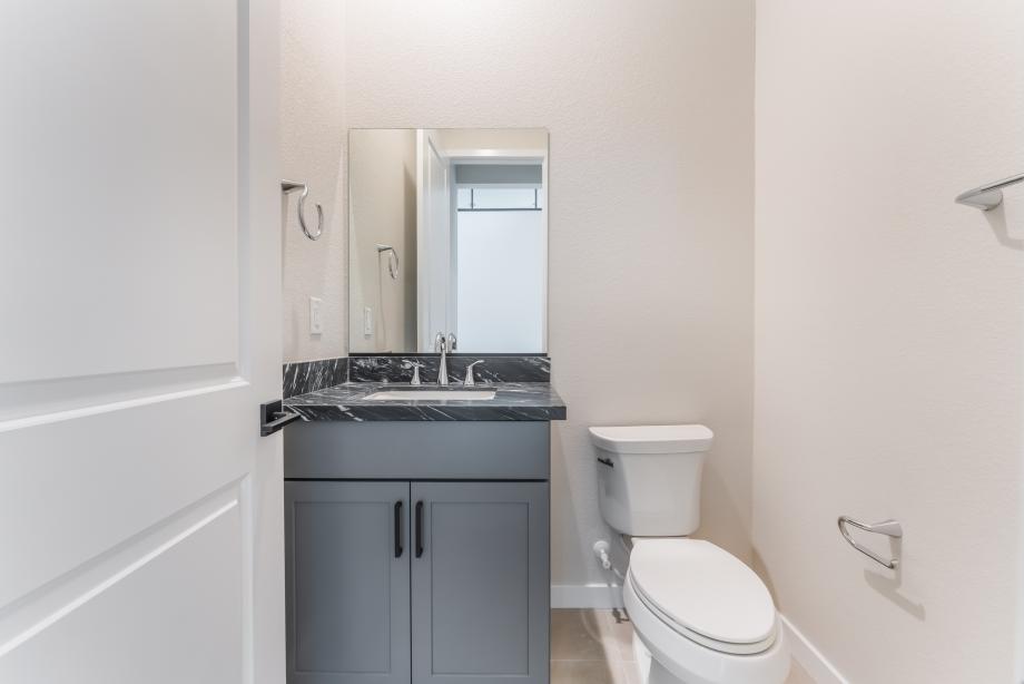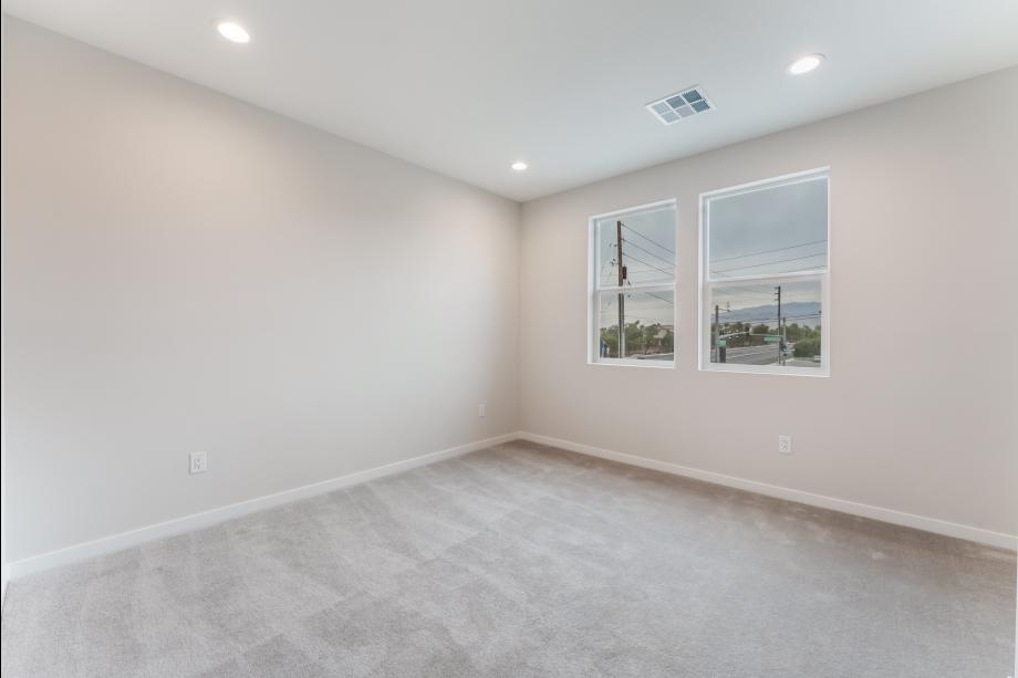 The Vanto presents a stunning open-concept living space with the great room and casual dining area open to an airy two-story foyer and spacious flex room, with alluring views of the large rear covered patio. Overlooking the main living area, the well-appointed kitchen features a central island with breakfast bar, plenty of counter and cabinet space, and a desirable walk-in pantry. A versatile first-floor bedroom with walk-in closet and private bath can be found off the foyer. Tucked away on the second floor, the gorgeous primary bedroom suite offers a sizable walk-in closet and spa-like primary bath featuring dual vanities, a large shower, and a private water closet. Secondary bedrooms, one with a private bath and two with a shared hall bath and dual-sink vanity, feature roomy closets and are central to a flexible loft space. The Vanto also includes convenient powder room and everyday entry, easily accessible laundry, and ample storage space.