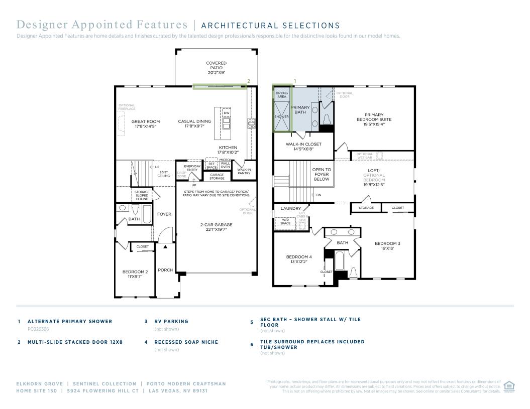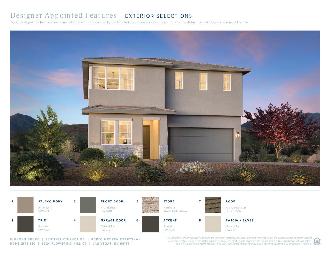 The Porto blends modern style with smart functionality. A welcoming foyer opens to a spacious great room, casual dining area, and covered patio. The chef’s kitchen features a large island with a breakfast bar, ample storage, and a walk-in pantry. Upstairs, a versatile loft leads to the airy primary suite with a walk-in closet, dual-sink vanity, and luxe shower. Secondary bedrooms share a bath with a separate vanity, while a first-floor bedroom enjoys a full hall bath. Additional highlights include RV parking, bedroom-level laundry, everyday entry, plentiful storage, and a north–south-facing lot on a quiet cul-de-sac, just a short walk to the community pool.