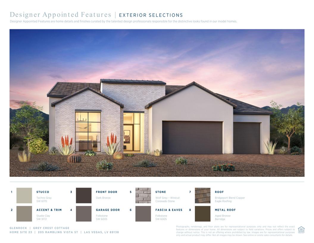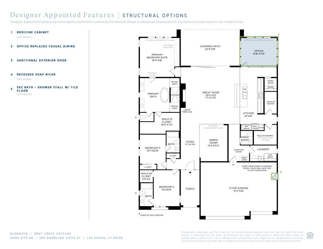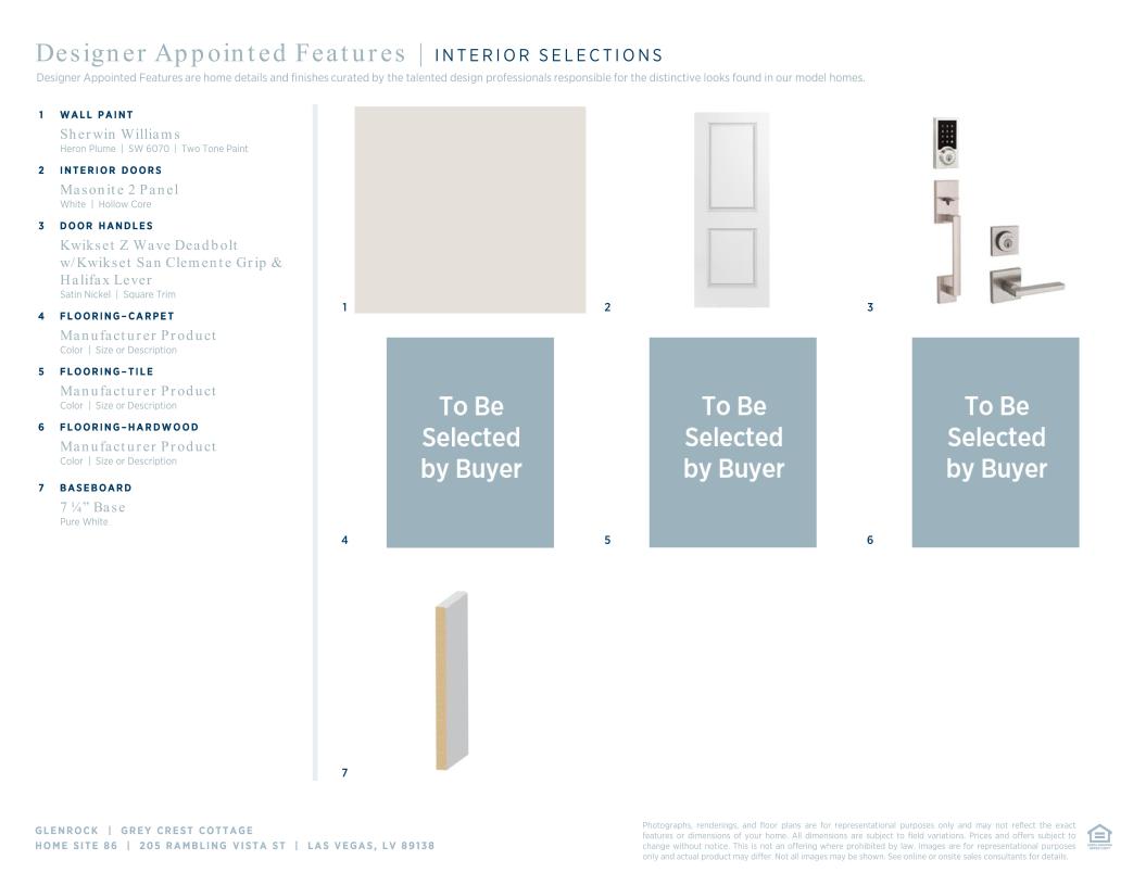 The Grey Crest mixes elegance with functionality in its spacious, single-story layout. A grand foyer with a high ceiling flows into the expansive great room enhanced by a linear fireplace and seamlessly connects to a formal dining room and a gorgeous covered patio. Overlooking a cozy casual dining area, the gourmet kitchen is well-appointed with two walk-in pantries, an oversized center island, and a versatile workspace. The luxurious primary bedroom suite is a true retreat, showcasing a generous walk-in closet and a spa-inspired private bath complete with a freestanding tub, a spacious shower, dual vanities, and a private water closet. Off the foyer, you'll find two sizable secondary bedrooms, each with a private bath. Additional highlights of the home include a convenient powder room, easily accessible laundry, and an everyday entry with a drop zone.
