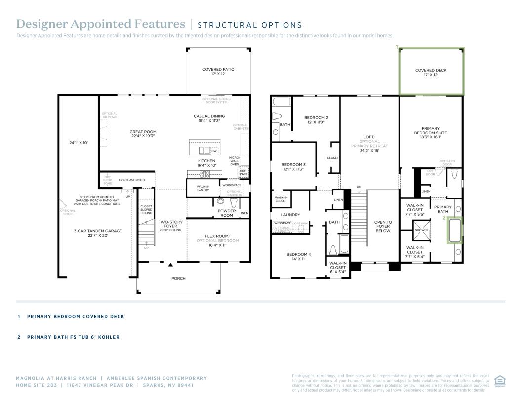 The stunning two-story Amberlee features exceptional gathering spaces and private retreats. The airy two-story foyer is open to a bright flex room, and reveals an expansive great room and casual dining area with covered patio access. The well-appointed kitchen features a large center island, plenty of counter and cabinet space, a sizable walk-in pantry, and a versatile workspace. The elegant primary bedroom suite is enhanced by a spacious walk-in closet and a spa-like primary bath with dual vanities, a large luxe shower, linen storage, and a private water closet. Central to a generous loft are three secondary bedrooms—one with a private bath, and two with a shared hall bath. Additional highlights include a convenient powder room and everyday entry, centrally located laundry on the bedroom level, 10' ceilings on the first floor, 9' ceilings on the second floor, and plenty of extra storage.