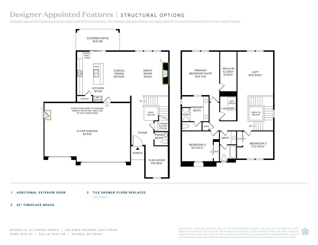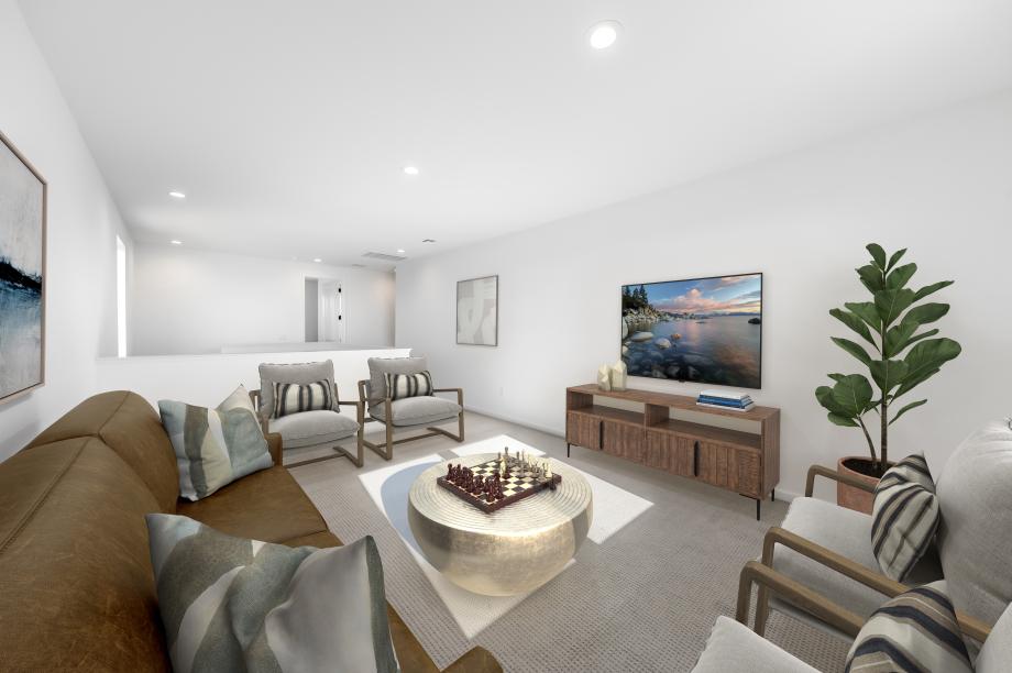 The Goldwin balances style with modern functionality across two thoughtfully planned levels. A welcoming foyer opens to a spacious living area where the great room, casual dining area, and kitchen form the heart of the home. Ideal for meal prep and gathering, the kitchen features a center island, ample counter space, and a pantry. Off the main living area, a covered patio offers space for indoor-outdoor living. Adjacent to the foyer, a flex room provides space for daily living, work, or relaxation. Upstairs, the elegant primary bedroom includes a generous walk-in closet and a spa-like bath with a dual-sink vanity, a luxe shower, and a private water closet. Two secondary bedrooms share a full hall bath with a separate vanity area. A bright loft offers extra space for studying, relaxing, or entertaining. Additional desirable features include an everyday entry, bedroom-level laundry, plentiful storage space, and a first-floor powder room.