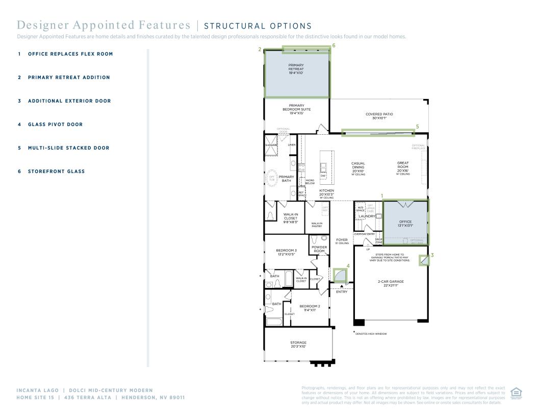 The Dolci seamlessly blends elegance and comfort within its open-concept, single-level floor plan. Step into a gorgeous extended foyer hallway that flows into a spacious great room. The main living area is completed by a casual dining area and a well-appointed kitchen offering an oversized center island and a generous walk-in pantry. Secluded off this space, the primary bedroom suite offers a luxurious retreat with a sizable walk-in closet and a spa-inspired private bath boasting dual vanities, a luxe shower, and a private water closet. Two secondary bedrooms are located off the foyer, each featuring a walk-in closet and private bath. An expansive covered patio accessible from the great room extends the living space outdoors. Also featured in the Dolci is a versatile flex room, an everyday entry with drop zone, conveniently located laundry, a powder room, and plenty of added storage.
