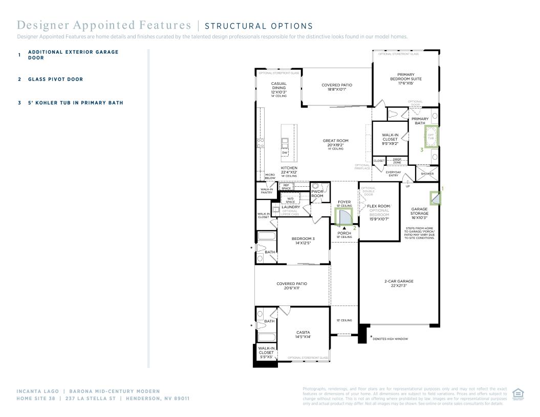 The Barona showcases a stunning floor plan that features a blend of open living spaces and private retreats. Upon entry, a welcoming foyer leads into the heart of the home which is the spacious great room with direct access to a rear covered patio., seamlessly connected to the kitchen and casual dining area. Overlooking a casual dining area, the kitchen impresses with a large center island and a walk-in pantry. The primary bedroom suite features an expansive walk-in closet and a luxurious private bath offering dual vanities, a luxe shower, and a private water closet. A secondary bedroom and a separate casita are located in the front of the home, each offering a private bath, walk-in closet, and access to a second covered patio via multi-slide stacked doors. Additional highlights of the home include a versatile flex room off the foyer, easily accessible laundry, a convenient everyday entry with drop zone, a powder room, and ample storage.