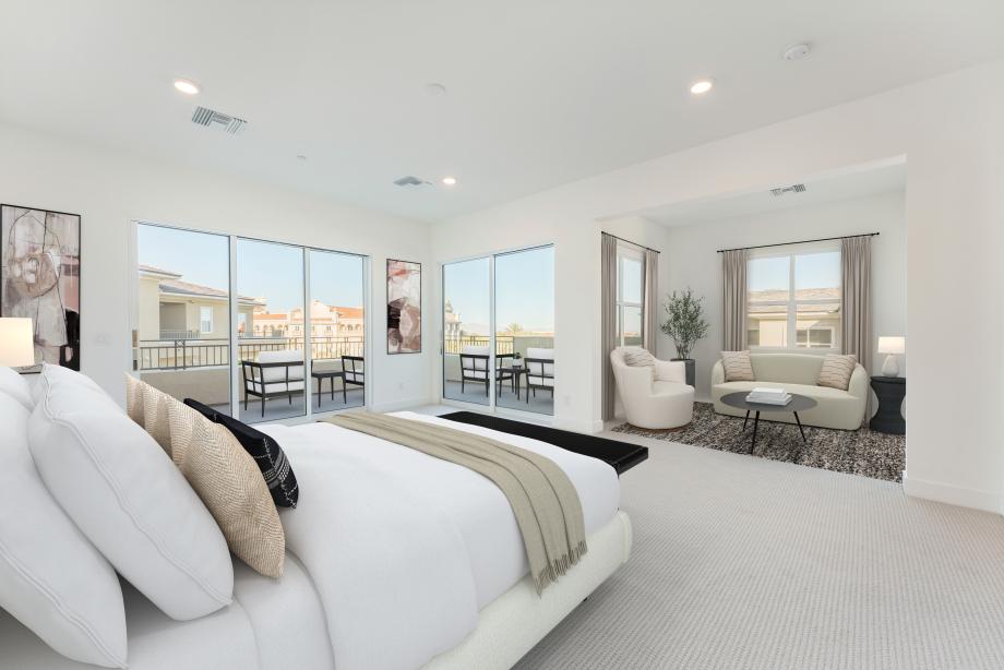 One of only 11 home sites within Mira Villa, the Valmarana seamlessly combines modern design with comfort. Boasting four spacious bedrooms, each with en suite baths and walk-in closets, this home provides ample space for everyone. The open-concept main living areas are enhanced by 90-degree sliding glass doors that seamlessly connect to the magnificent wraparound patio, perfect for entertaining or unwinding. As the centerpiece of the home, the open-concept great room is highlighted by a gorgeous fireplace and convenient access to the covered outdoor patio. The primary bedroom suite is the perfect retreat with direct access to the large covered deck through the large multi-slide stacked doors and offers an expansive bathroom and walk-in closet. The home is loaded with extras, including upgraded tile flooring throughout the main living areas, designer tile surrounds in all showers, and upgraded matte black plumbing fixtures. Experience the luxury you've always wanted by scheduling a tour today.