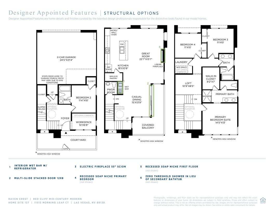 The polished Red Cliff home design combines style and functionality. A foyer entry leads to a useful workspace and a versatile secondary bedroom with a private bath. The second floor reveals a beautiful great room and a casual dining area with access to a covered balcony. The well-equipped kitchen features a spacious center island, a roomy pantry, and generous cabinet and counter space. On the third floor, the primary bedroom is a lovely retreat with a walk-in closet and a charming primary bath with a dual-sink vanity, a luxe shower, and a private water closet. Adjacent to an airy loft, two secondary bedrooms offer ample closet space and share a hall bath with a separate vanity area. Other desirable features include a powder room, bedroom-level laundry, and plenty of storage.