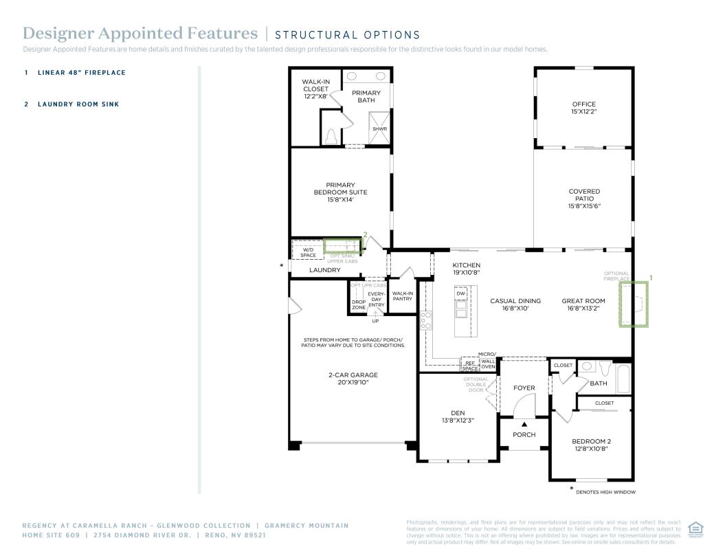 Deluxe urban style. The Gramercy's welcoming covered entry and foyer open onto the spacious dining room and great room, and views of the desirable covered patio and secluded office beyond. The well-designed kitchen is equipped with a large center island with breakfast bar, plenty of counter and cabinet space, and ample walk-in pantry. The private primary bedroom suite is complete with huge walk-in closet and spa-like primary bath with dual-sink vanity, luxe glass-enclosed shower, and private water closet. The spacious secondary bedroom features a sizable closet and shared full hall bath. Additional highlights include a versatile office off the foyer, convenient drop zone, centrally located laundry, and additional storage.